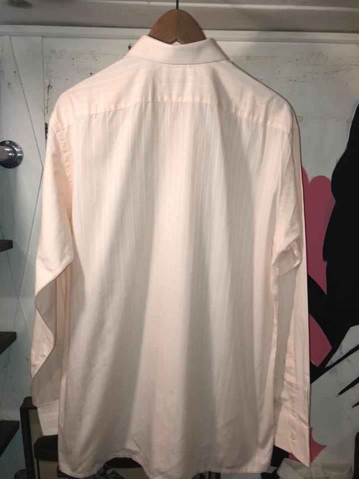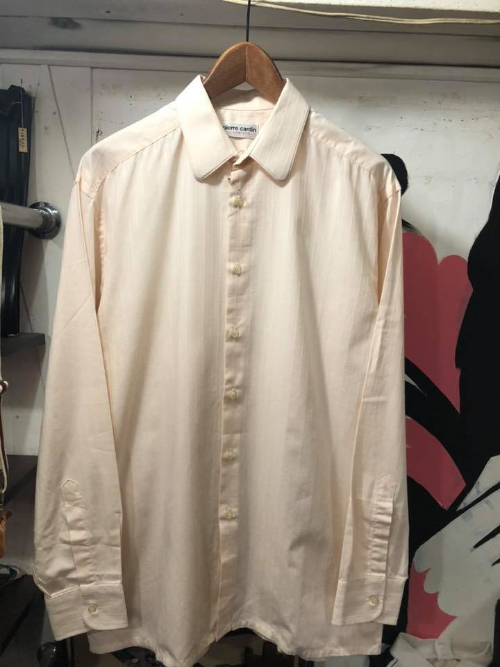 ピエールカルダンラウンドカラーシャツ。フランス製。ストライプ柄。ベージュっぽいピンク。グッドコンディション。