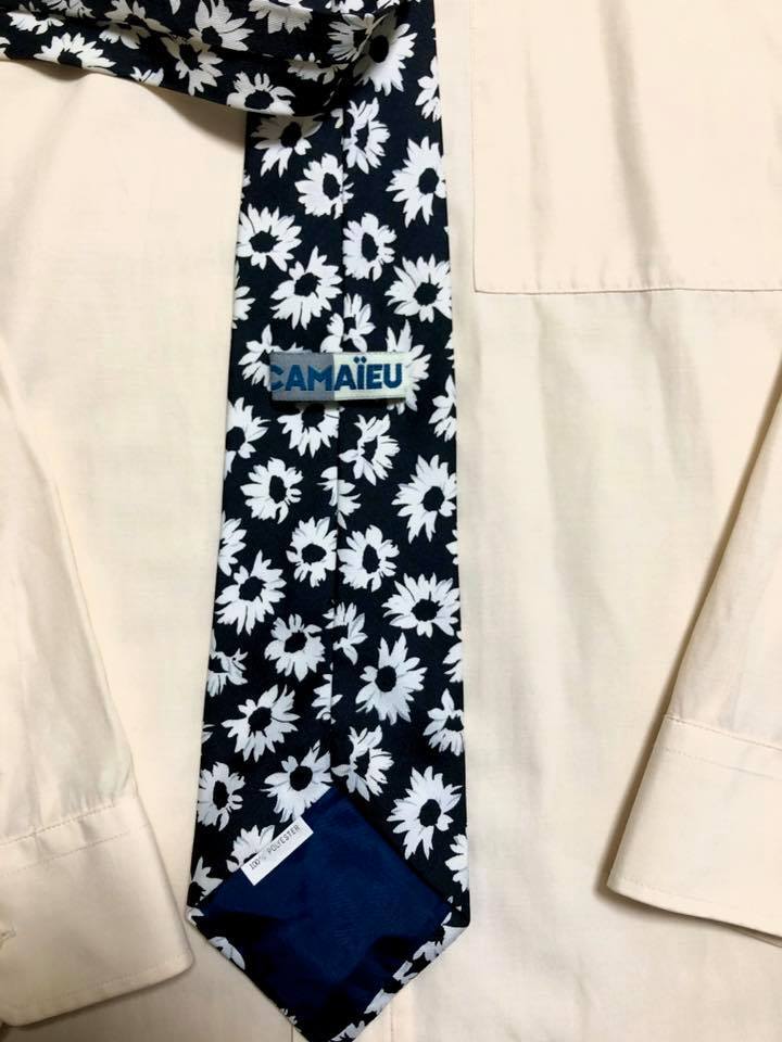 camaieuは、1984年に設立されたブランド。大剣は、9cm。黒ベースに白の花柄。素材は、ポリエステル。
