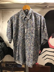 ペイズリー半袖柄シャツ。フランス製。肩幅54.5 身幅60 着丈77.5 袖丈25.5 ゆったりめのシルエットと、美しい発色が特徴的。コットン100%
