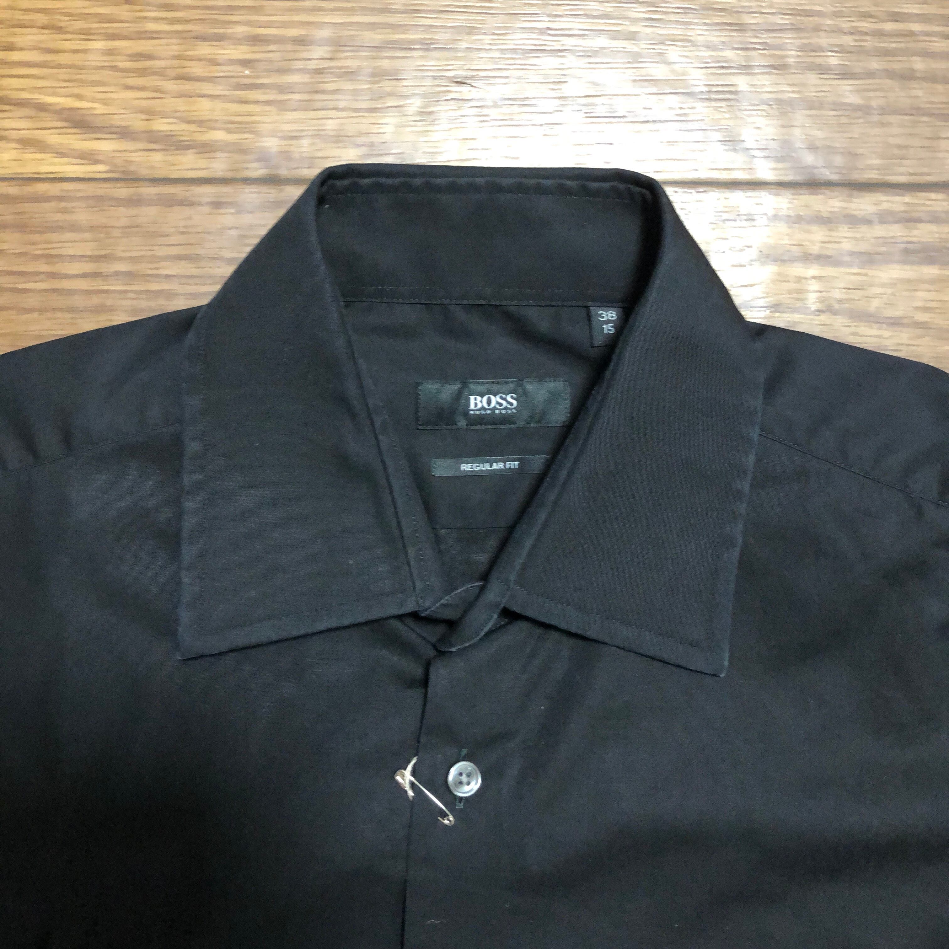ヒューゴボス黒ダブルカフスシャツ。肩幅45