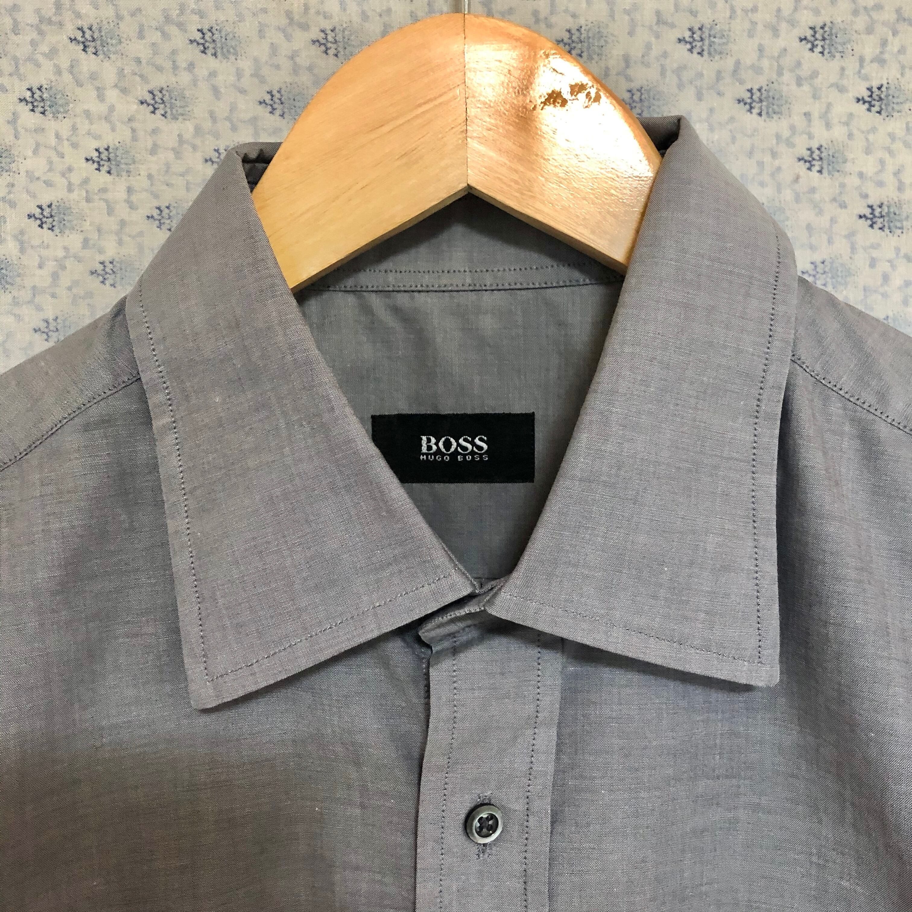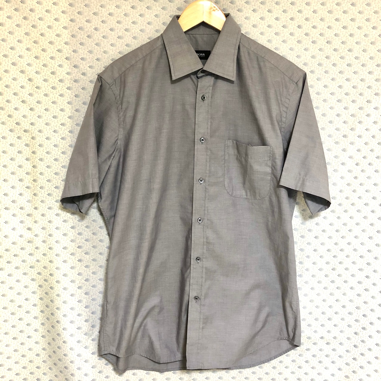 ヒューゴボス半袖シャツ。グレー。コットン100%