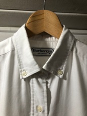 バーバリー半袖ボタンダウン白シャツ。コットン