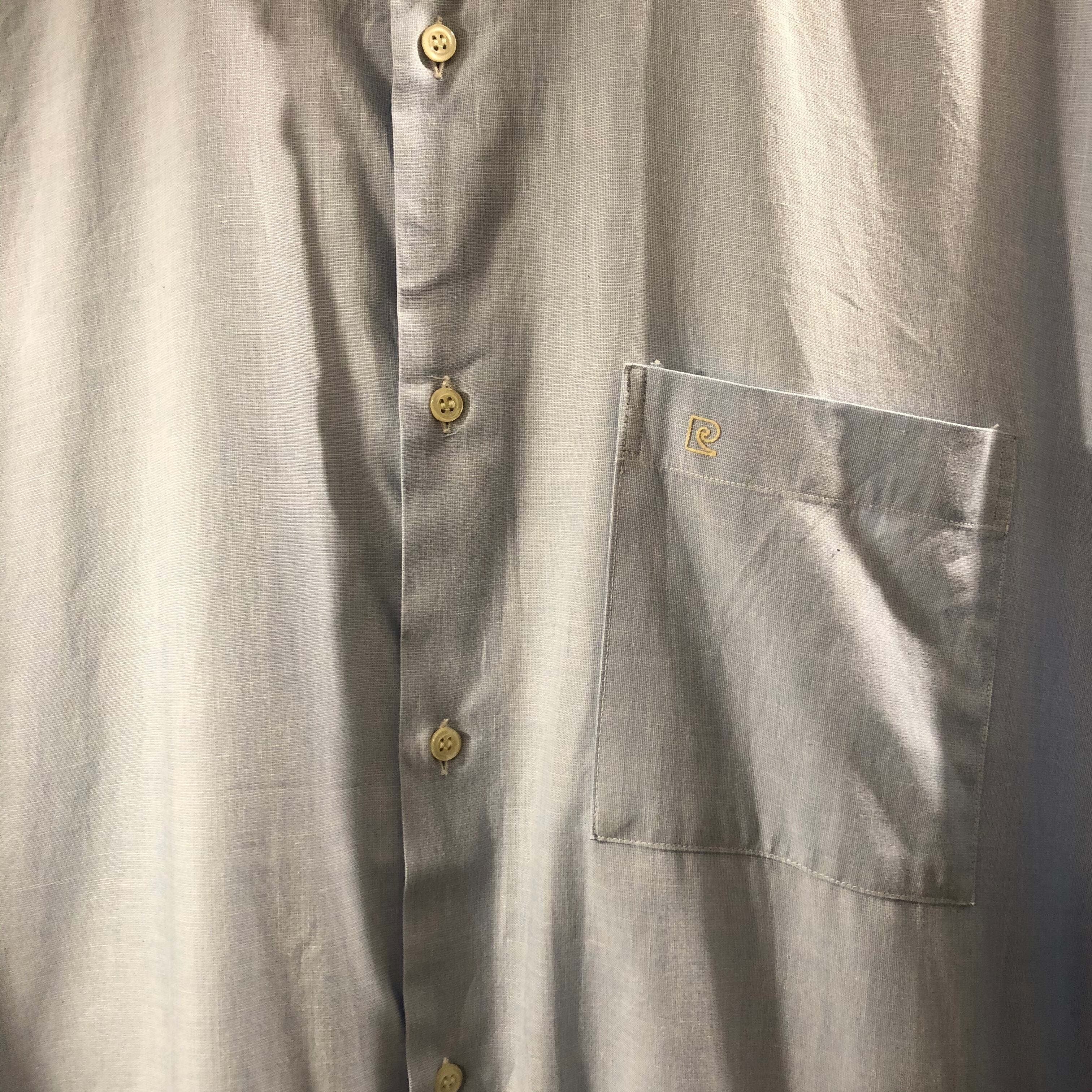 ピエールカルダン水色のクレリックシャツ。フランス製。素材は、ポリエステル30%コットン70% サイズ表記42 肩幅49.5 身幅60 着丈76.5 袖丈63