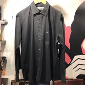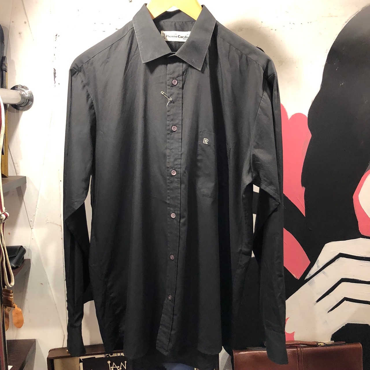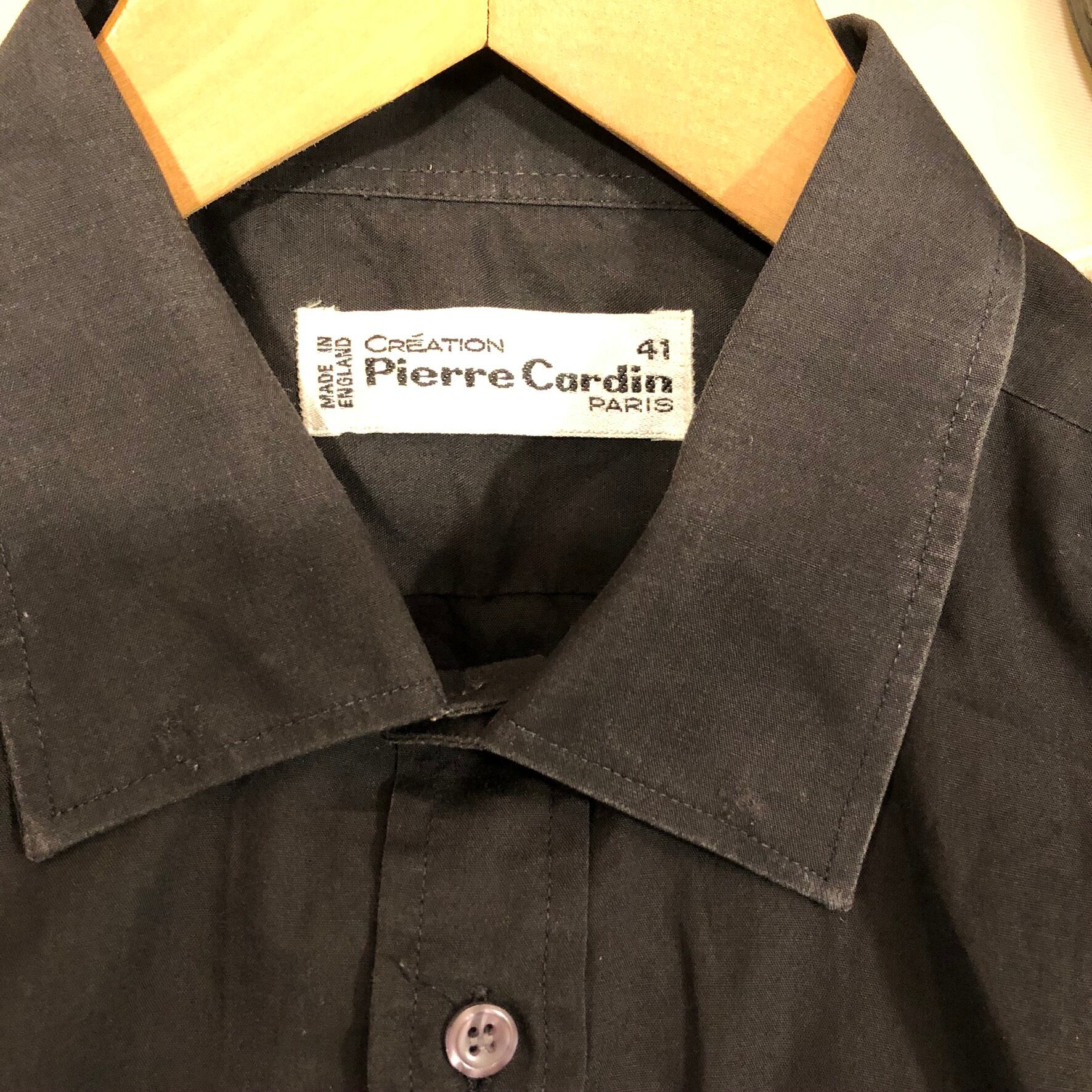 ピエールカルダン黒シャツ。ピエールカルダンにしては珍しいイングランド製。胸ポケットのステッチが映える。ポリエステル65% コットン35%
