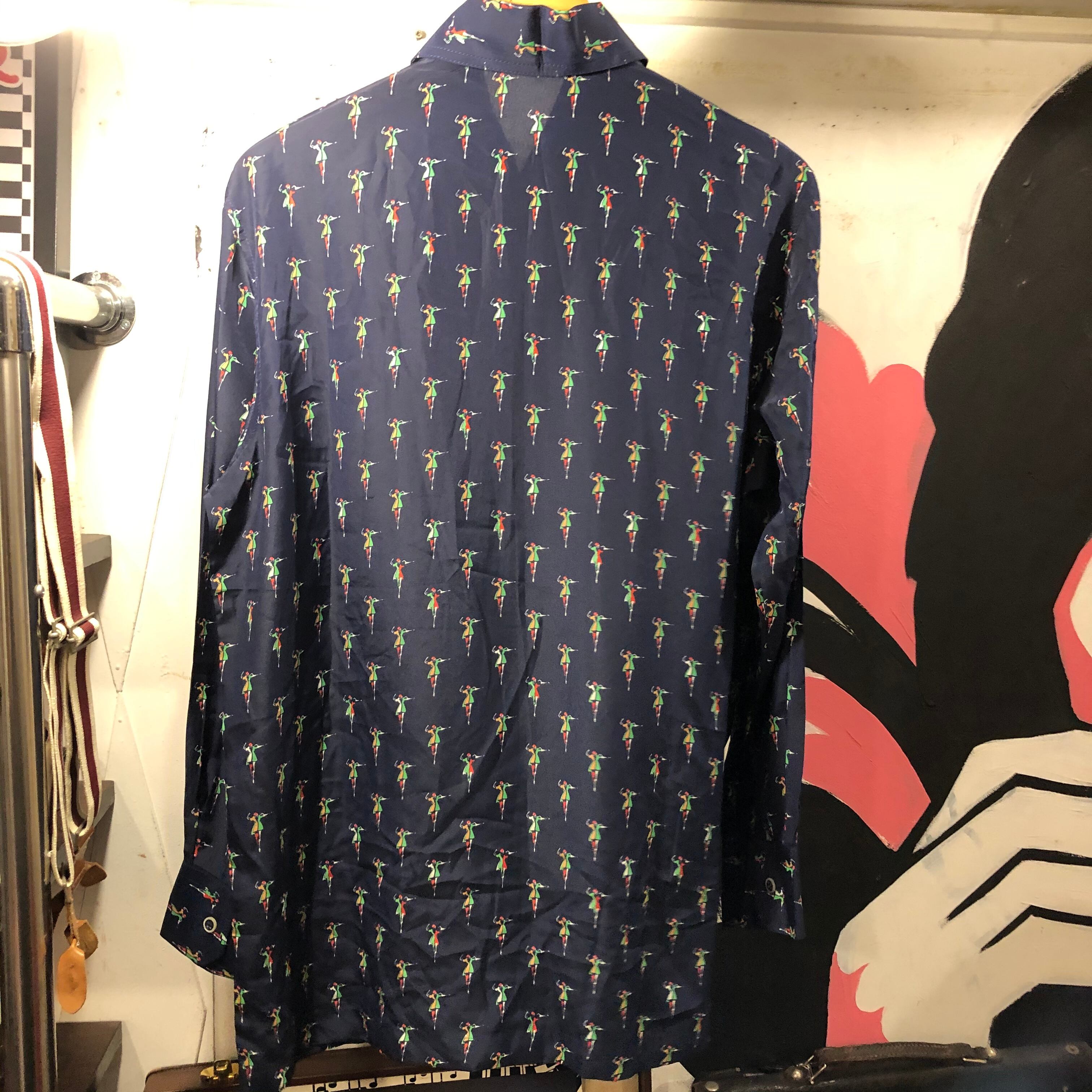 70'sKey Richardポリエステルシャツ。70'sらしい大きな襟とタイトなデザイン。肩幅45 身幅54.5 着丈72.5 袖丈58 レトロな柄がユニークだ。