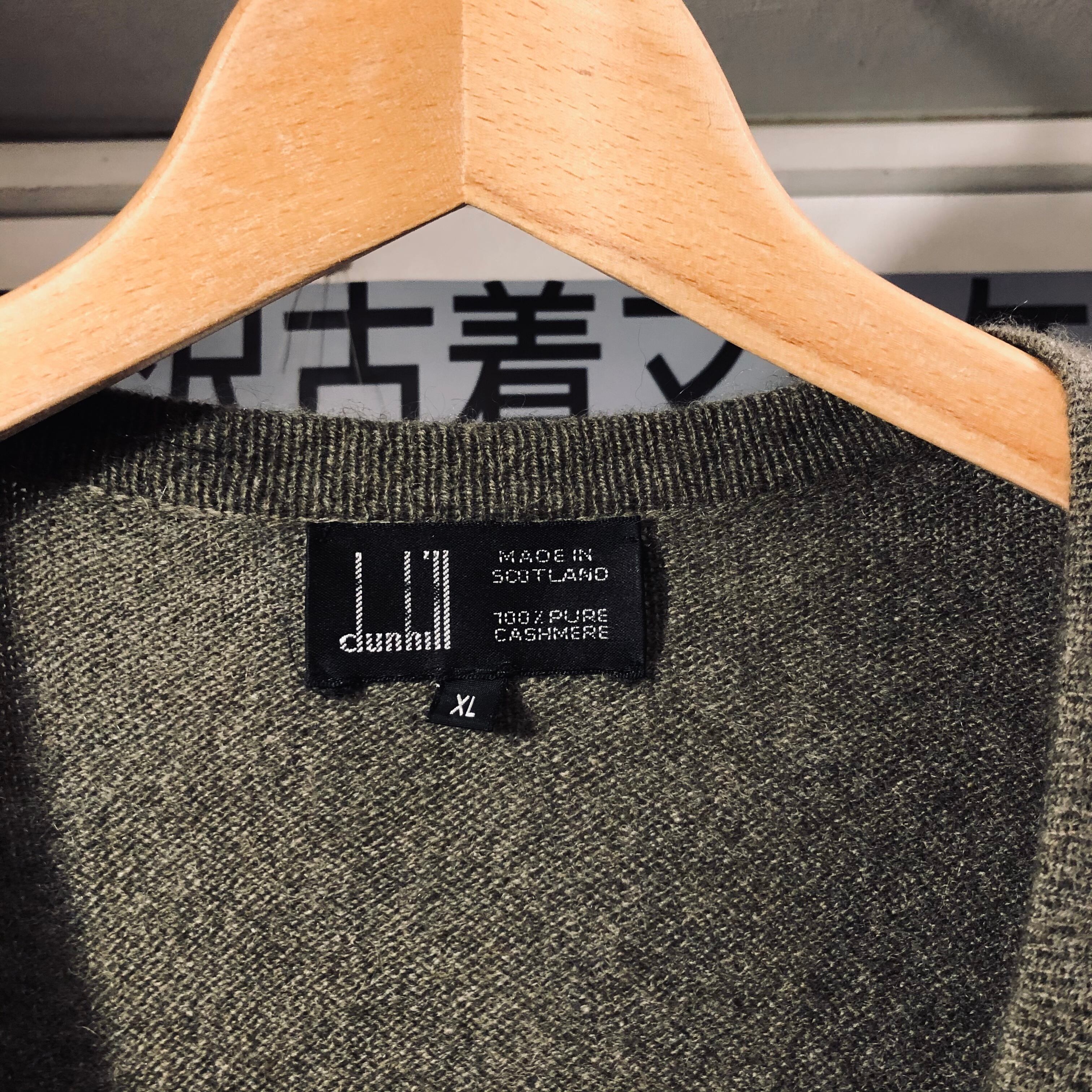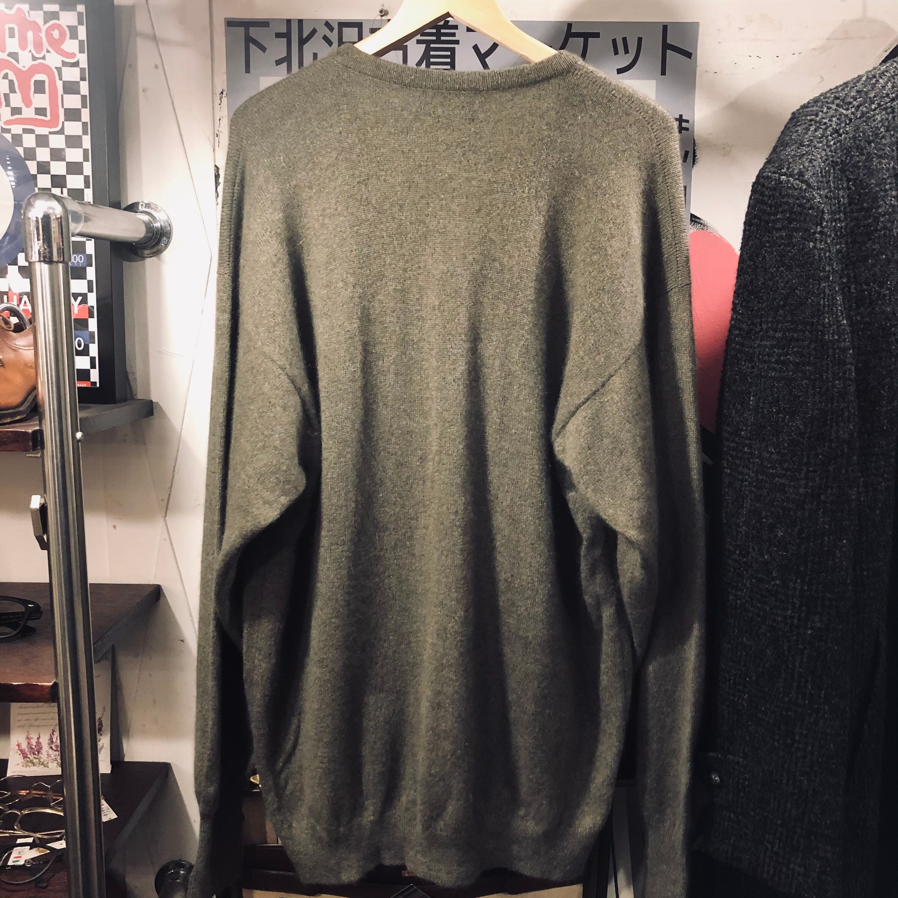 良質なカシミア100%のダンヒルのVネックニット。カーキグリーンとグレーの中間色。