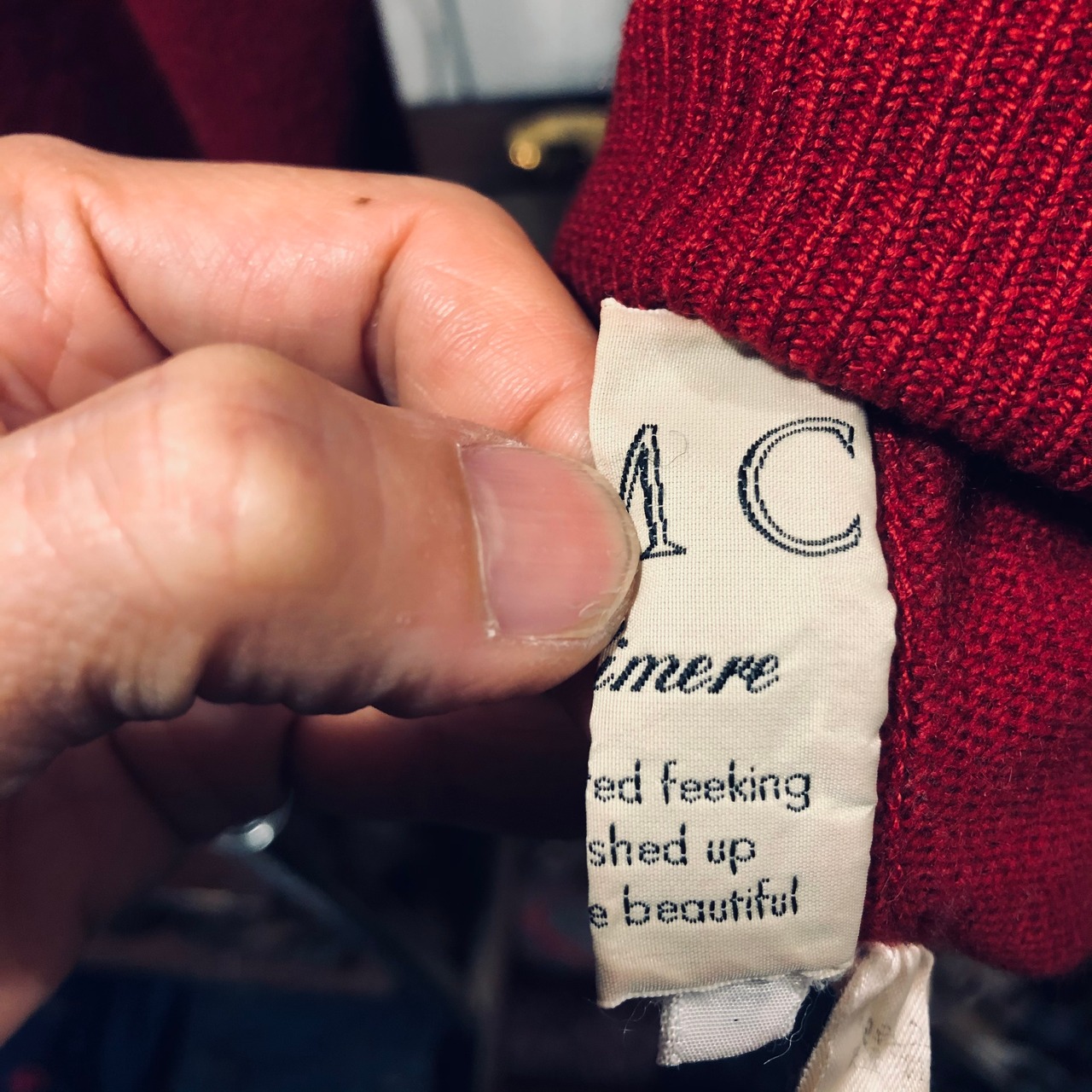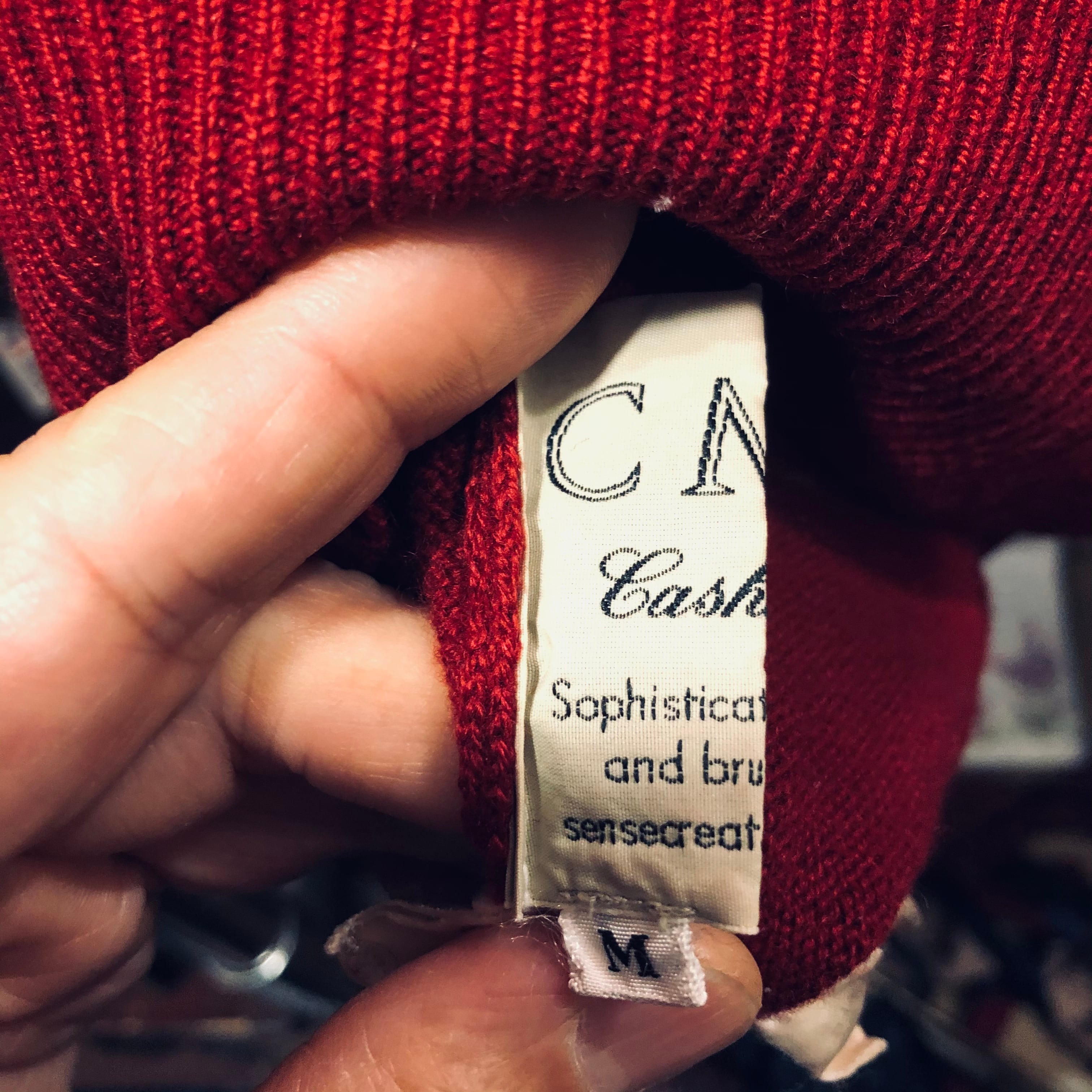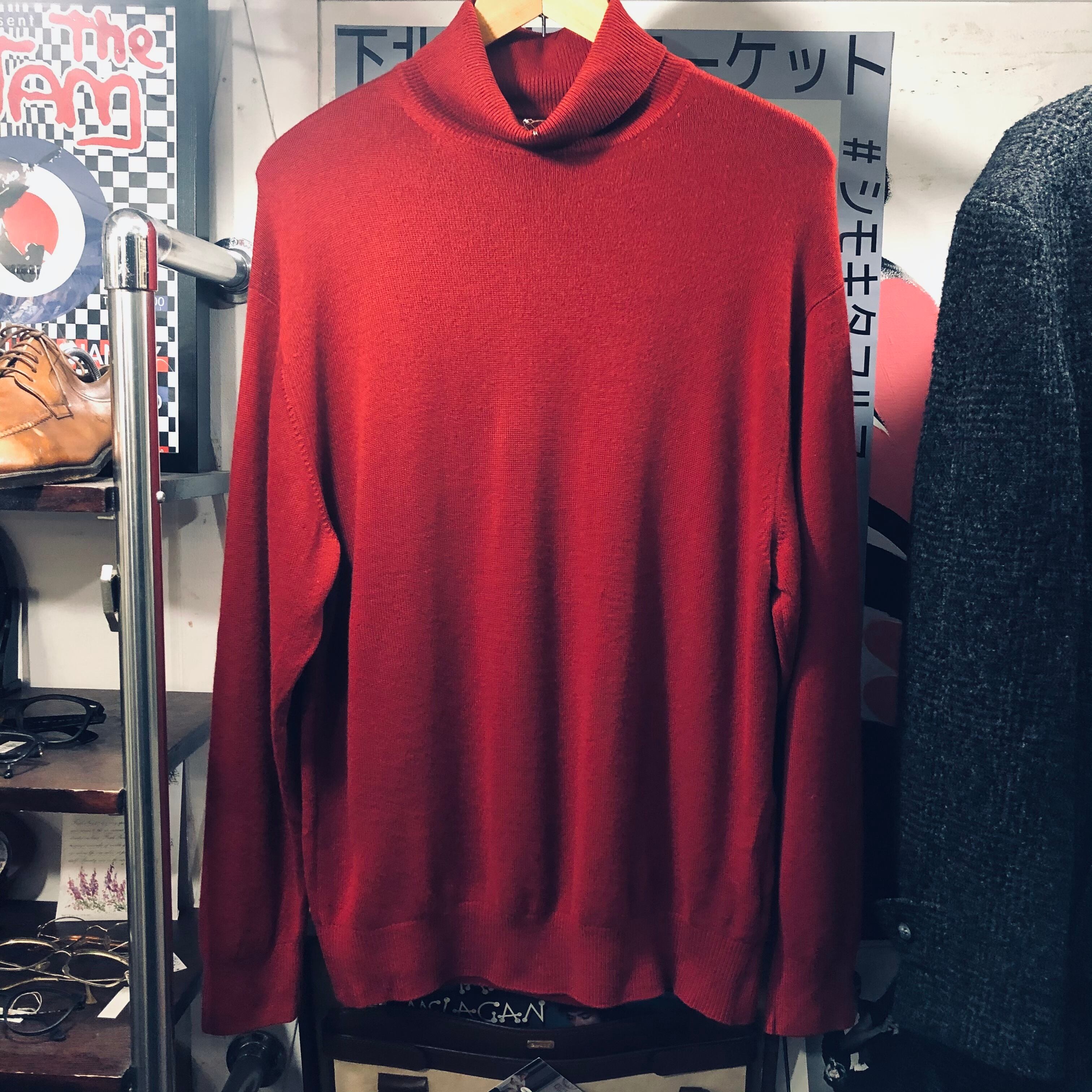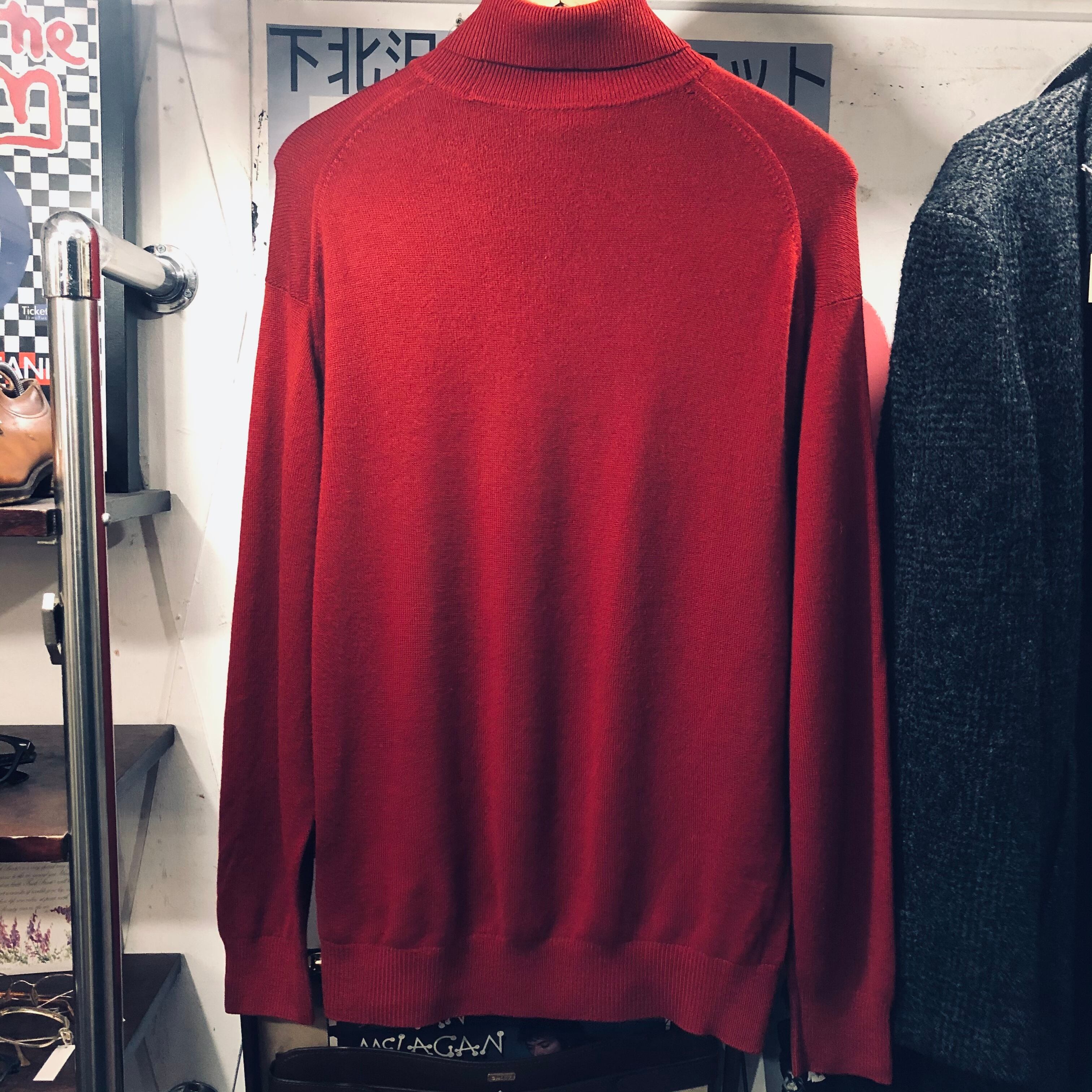 赤のハイゲージのカシミアタートルネックセーター。赤は、ややワインレッドよりのダークトーン。日本製。