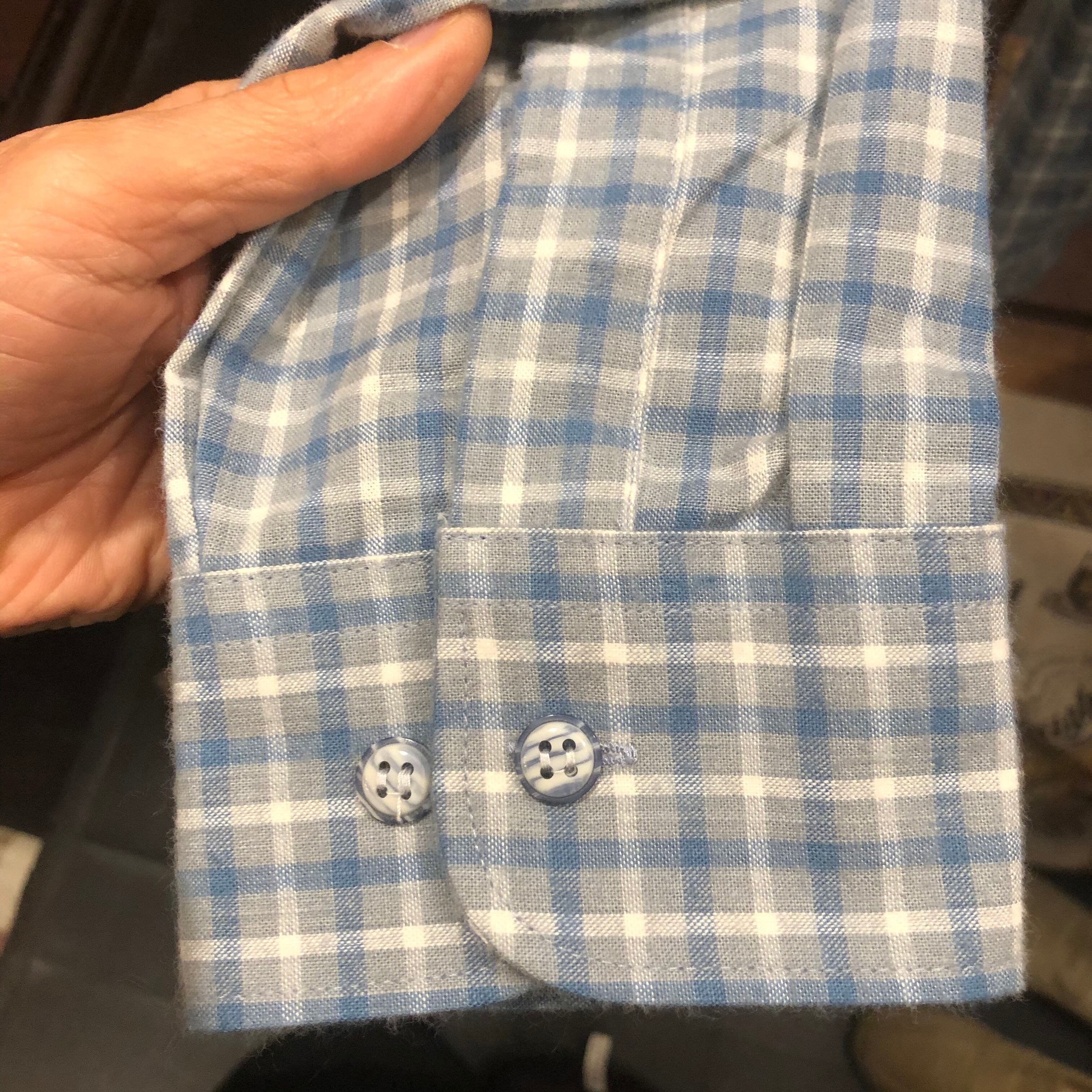 爽やかな色合いのシャツ。ボタンの色もきれい。