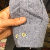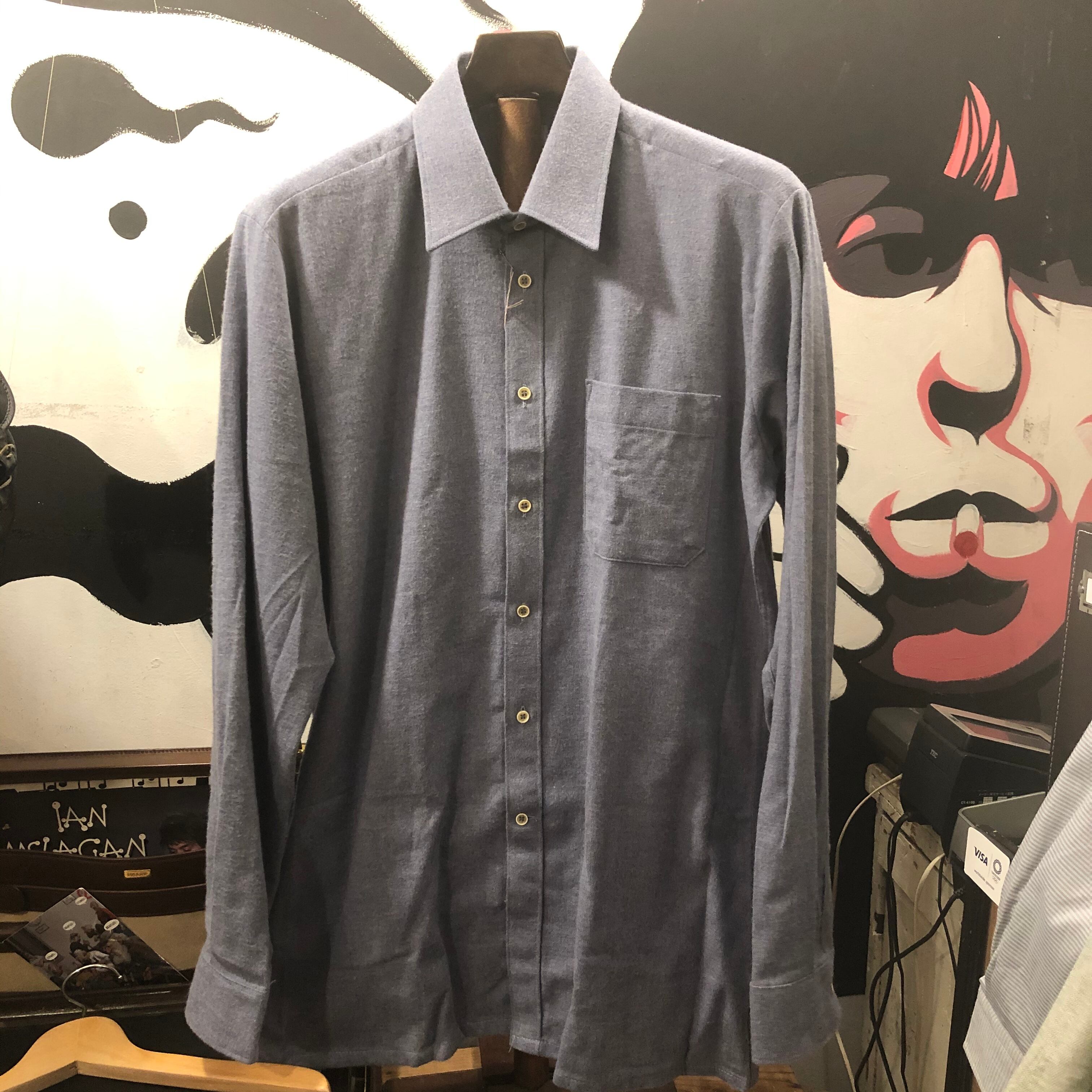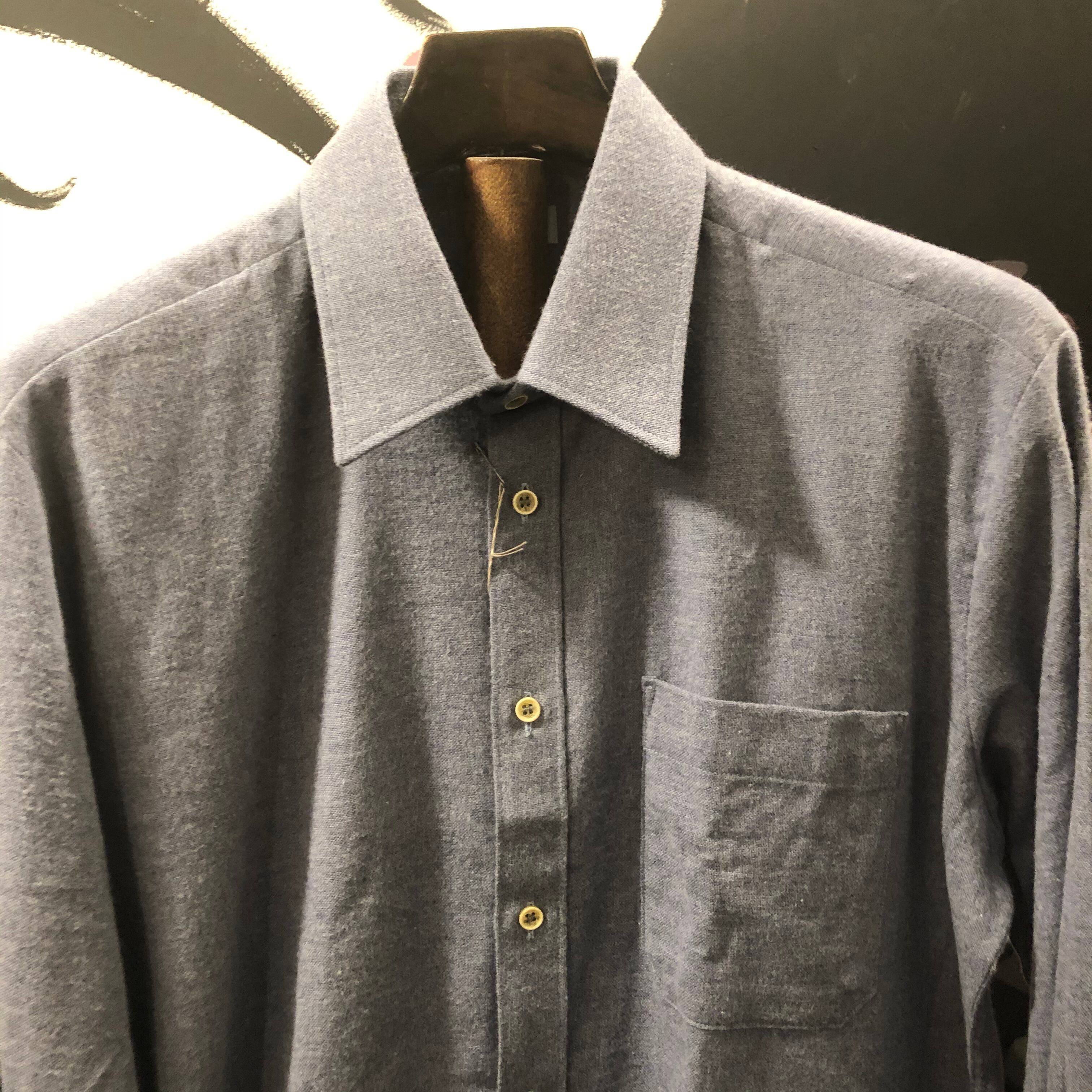 Haticoシャツ。ヴィンテージ デッドストック。ドイツ製。毛足の長い柔らかい肌触りのコットン100%のシャツ。ブルーグレーで落ち着いた大人な雰囲気の色合いで、飴色っぽいボタンもヴィンテージ 感があって、いい感じです。