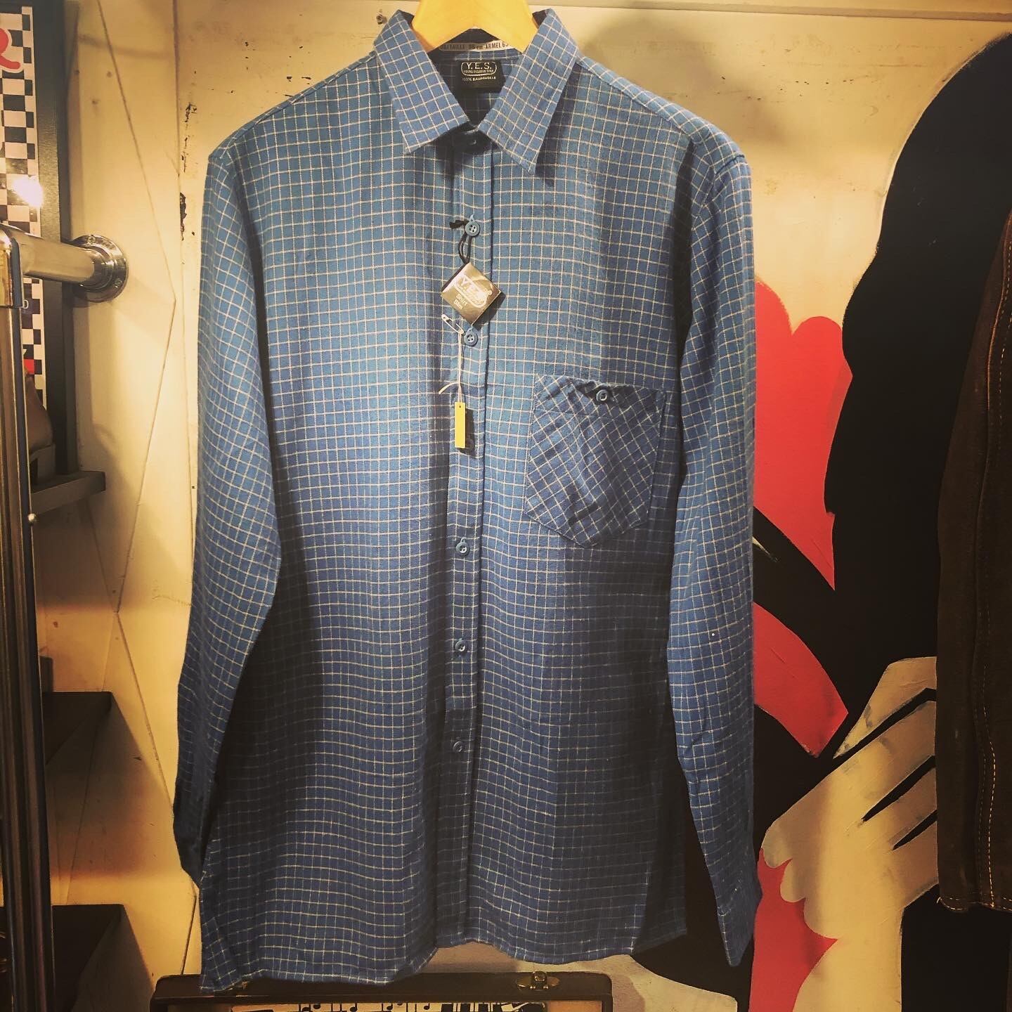 Y.E.S格子柄シャツ。発色の美しいブルーが特徴のヴィンテージ のデッドストックシャツ。