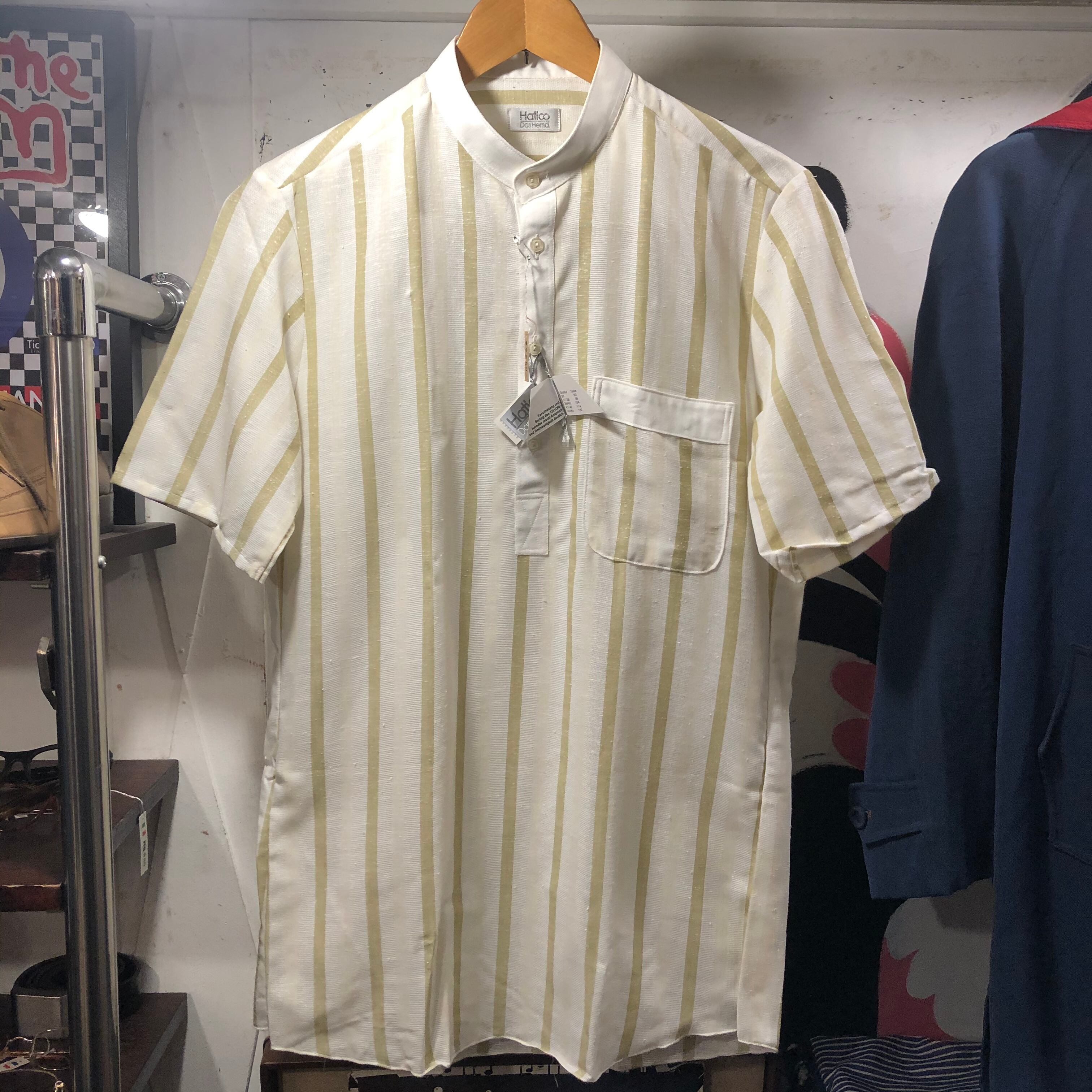 Hatico スタンドカラー半袖ストライプシャツ デッドストック