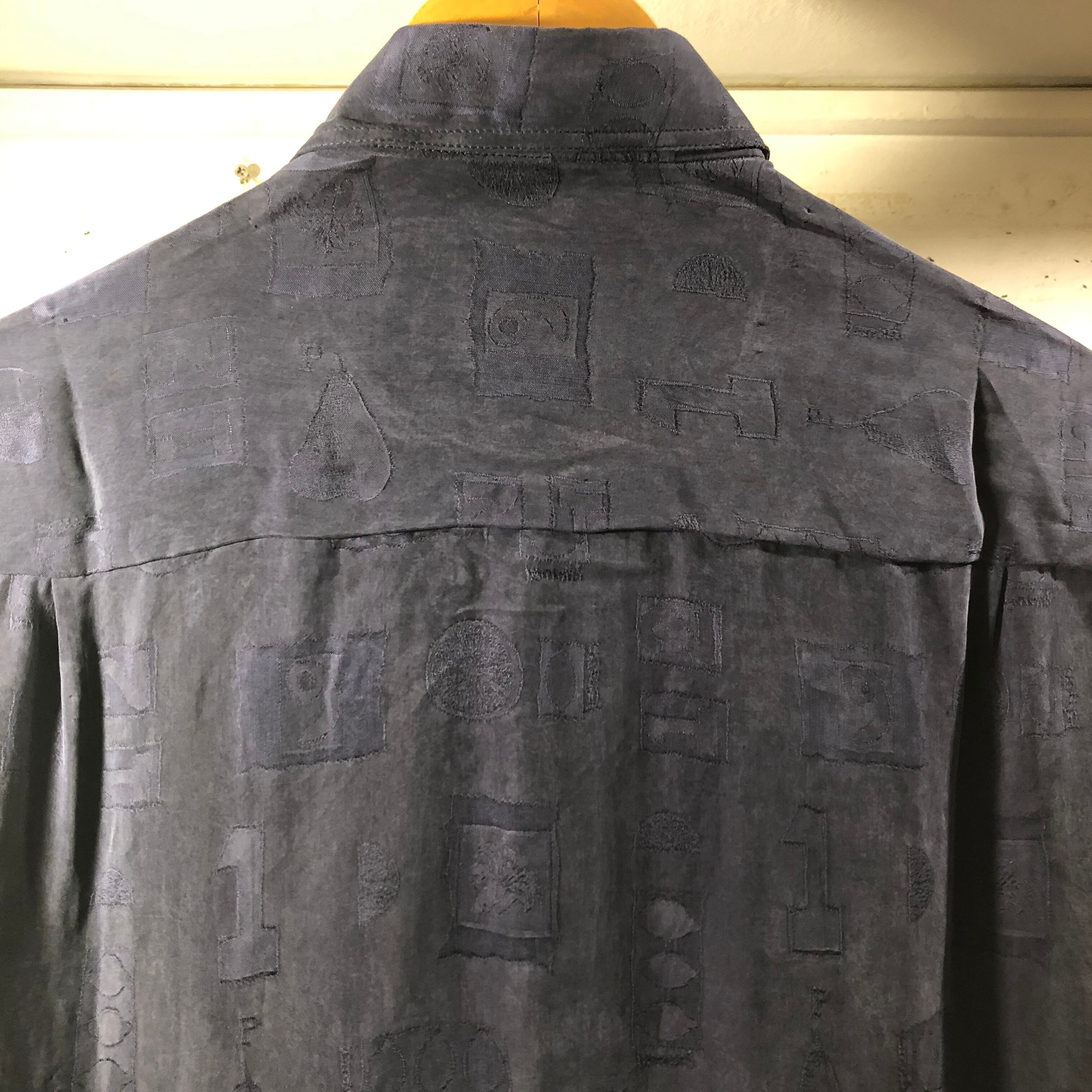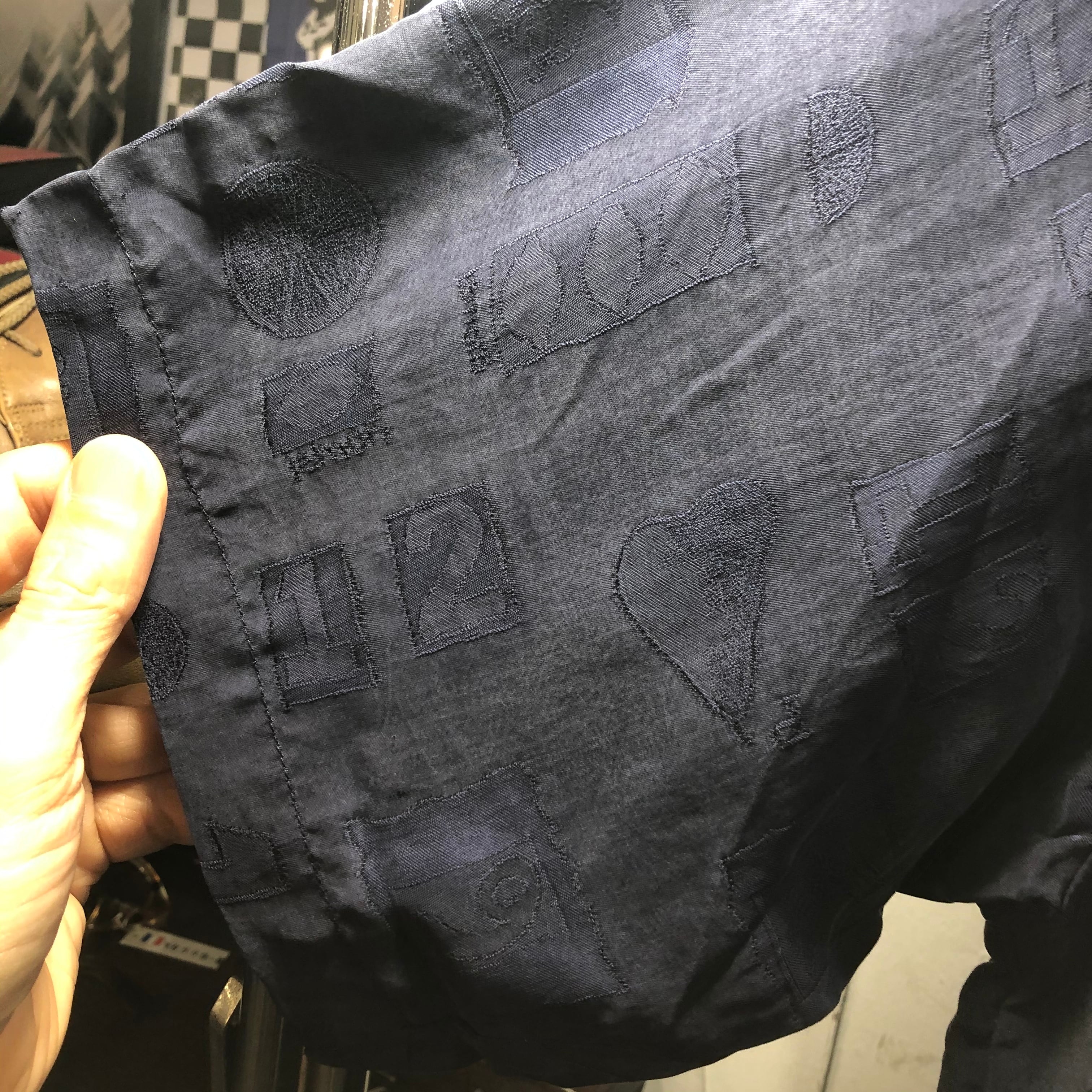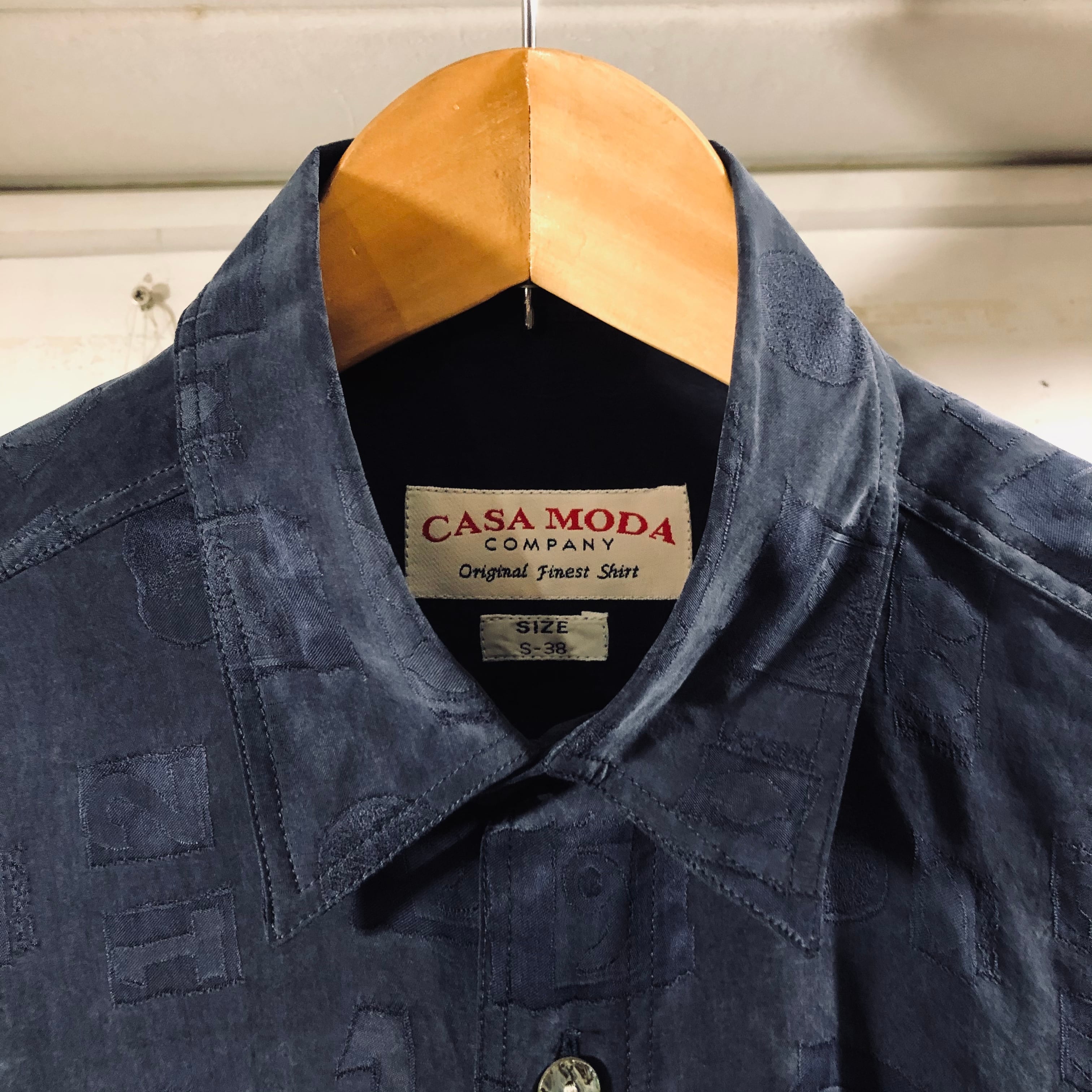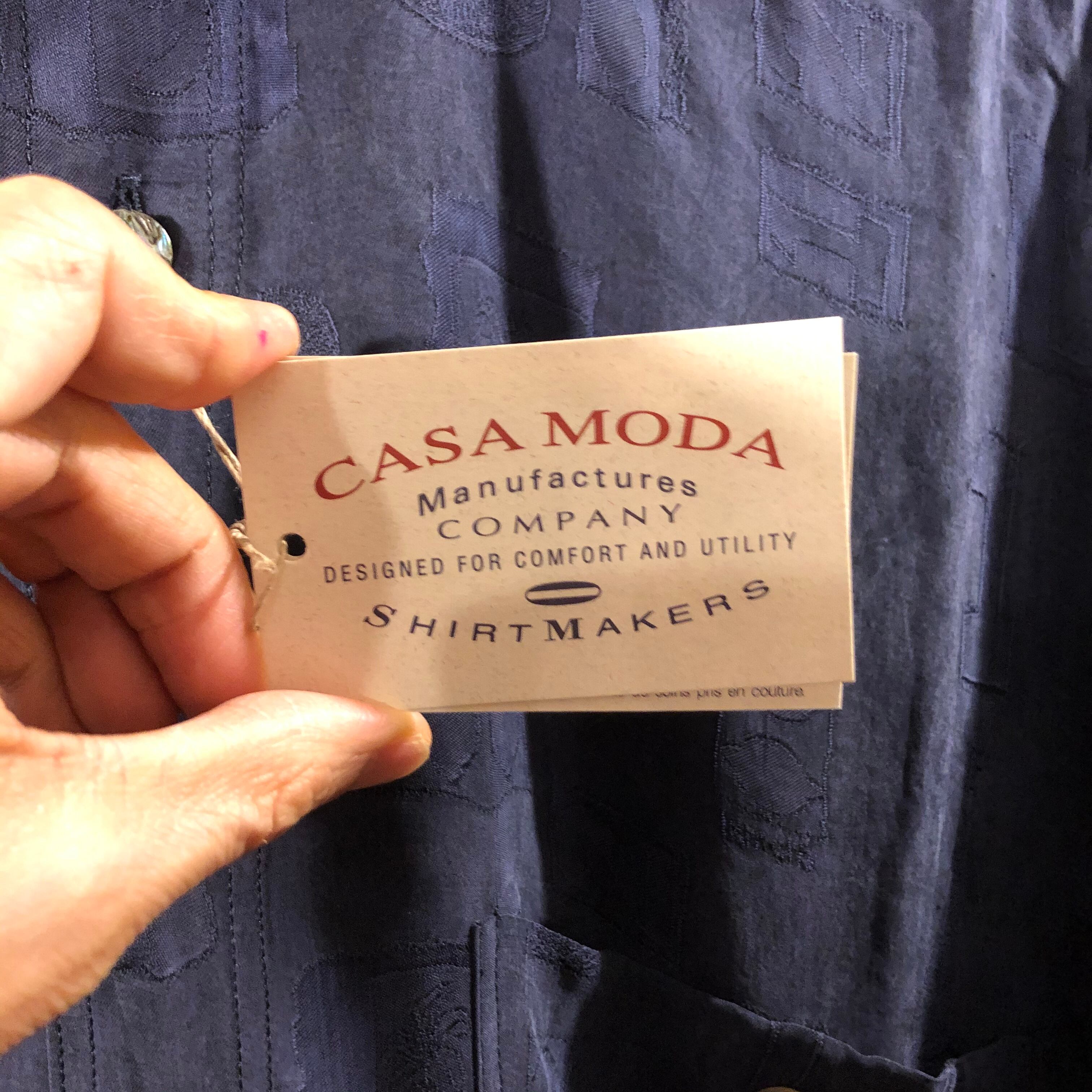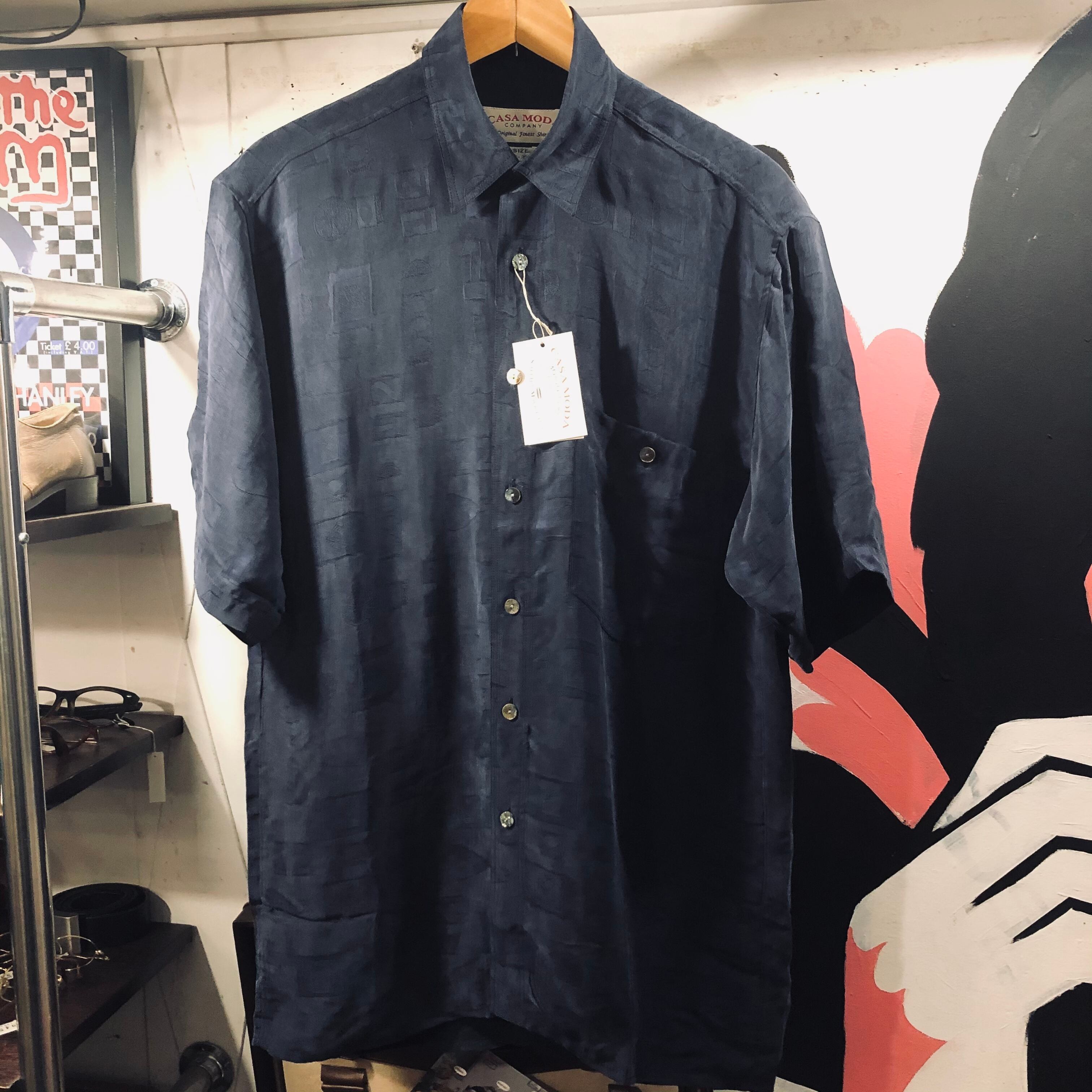 Casa Moda半袖キュプラシャツ。ドイツ製。デッドストック。キュプラ特有の光沢とドレープ感のある生地感が特長。色味は、光沢のあるネイビー