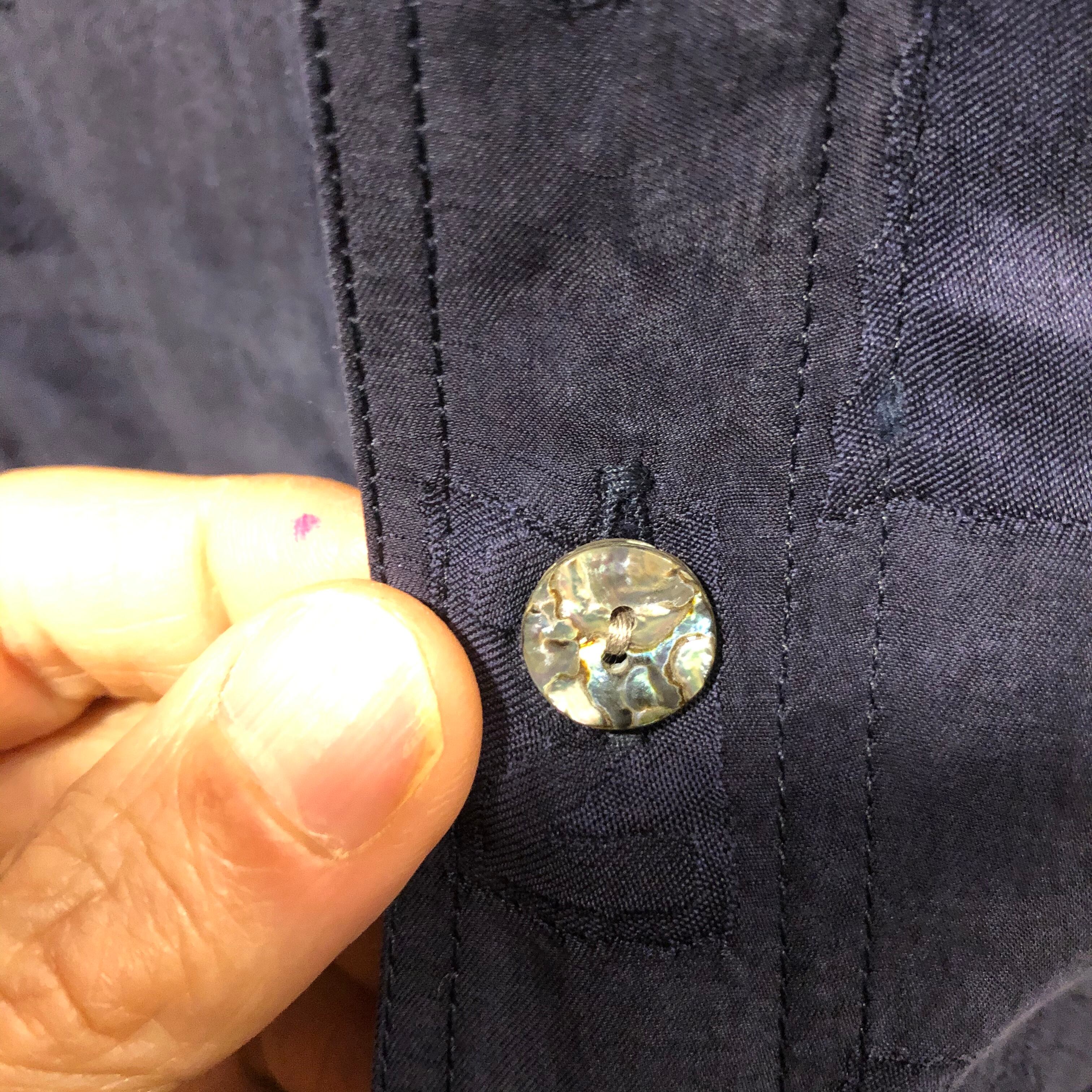 Sサイズ 光沢のある大きめのシェルボタンも、こだわりを感じさせる。