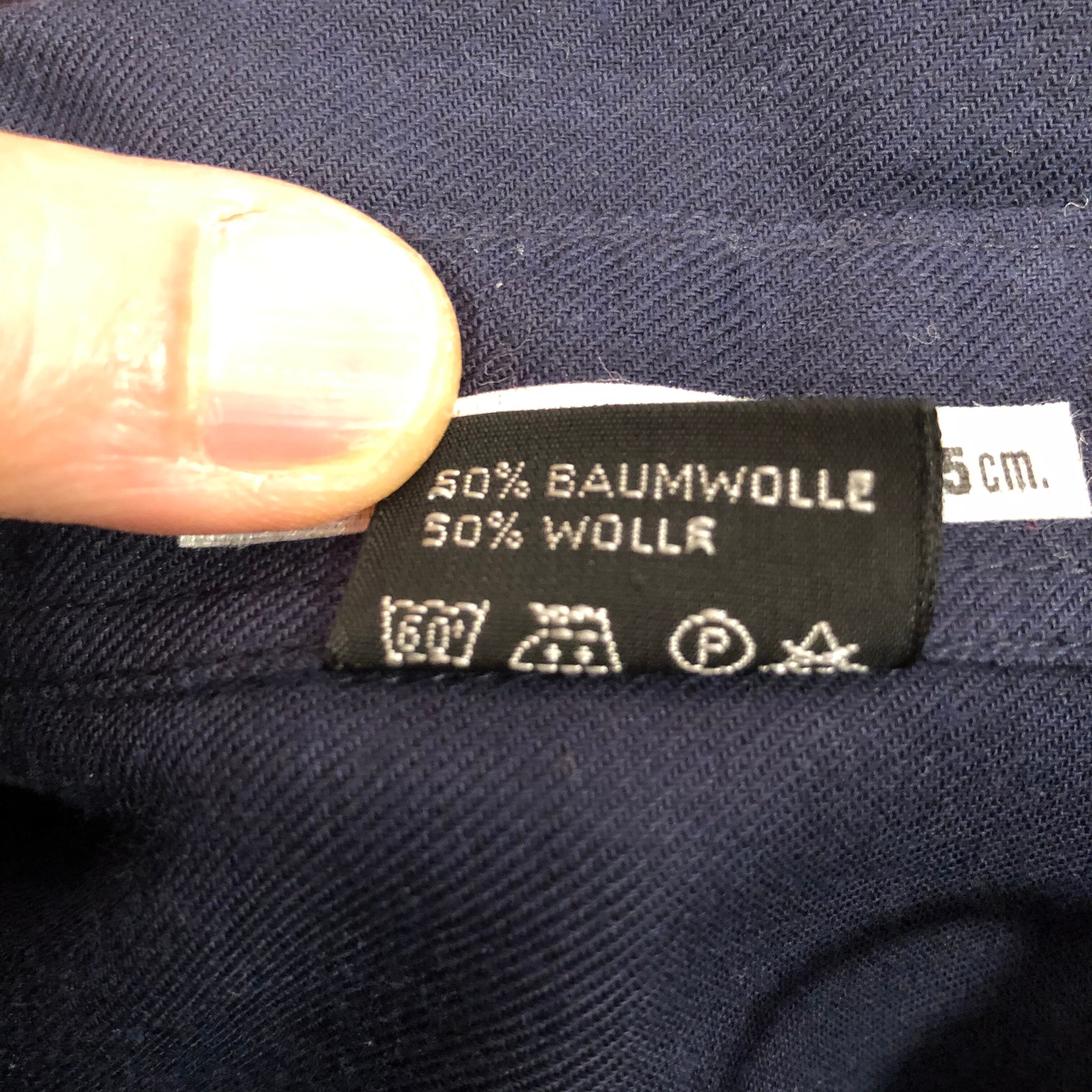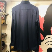 ダークネイビーの細身のスタイリッシュなシャツ。両胸のフラップ付きのポケットのデザインがかっこいい。素材は、コットン50%ウール50%だが、きめの細かいウールの糸のため、ウール感はあまり感じられない。真夏以外であれば、いつ着ても大丈夫でだと思います。