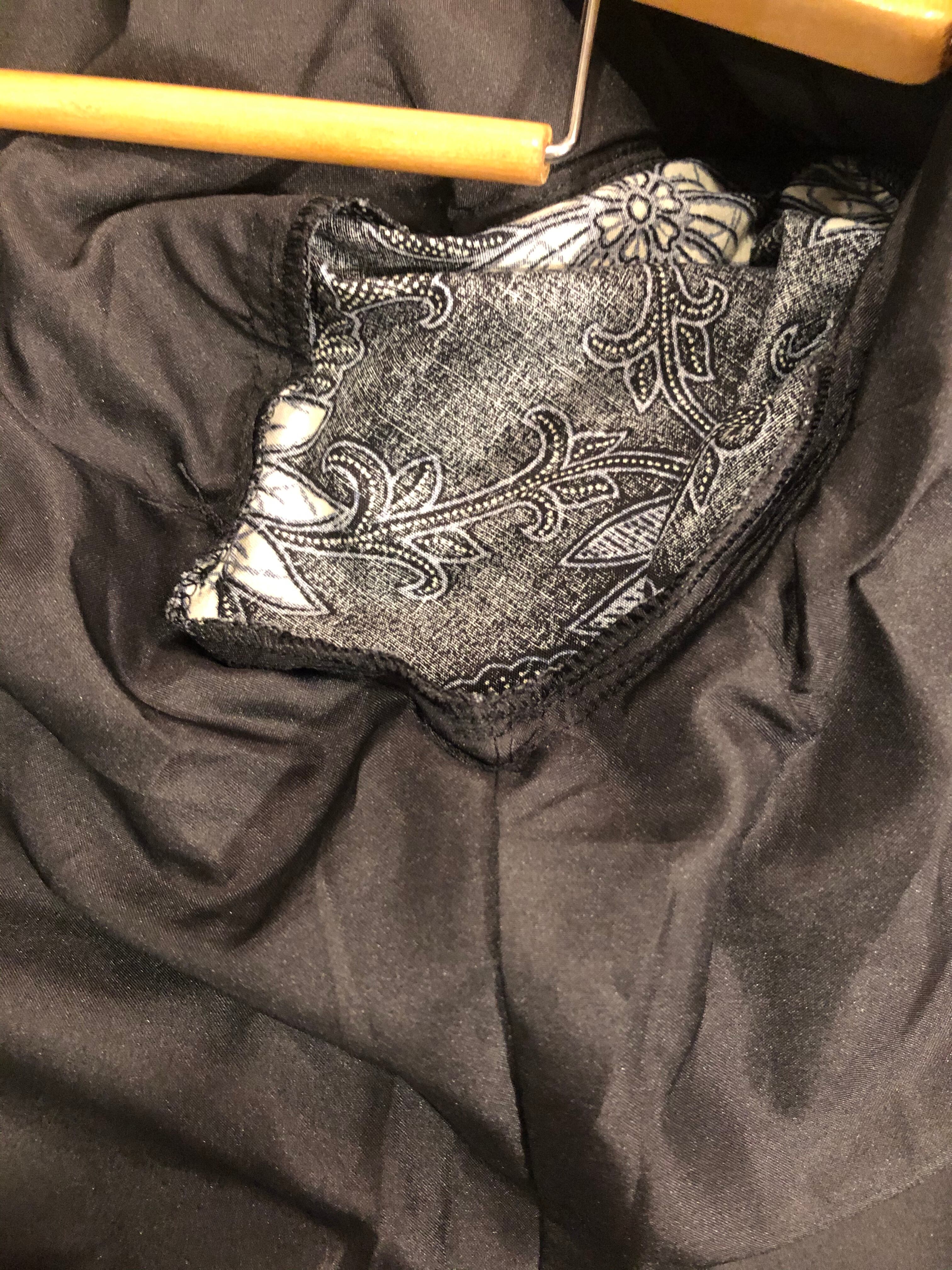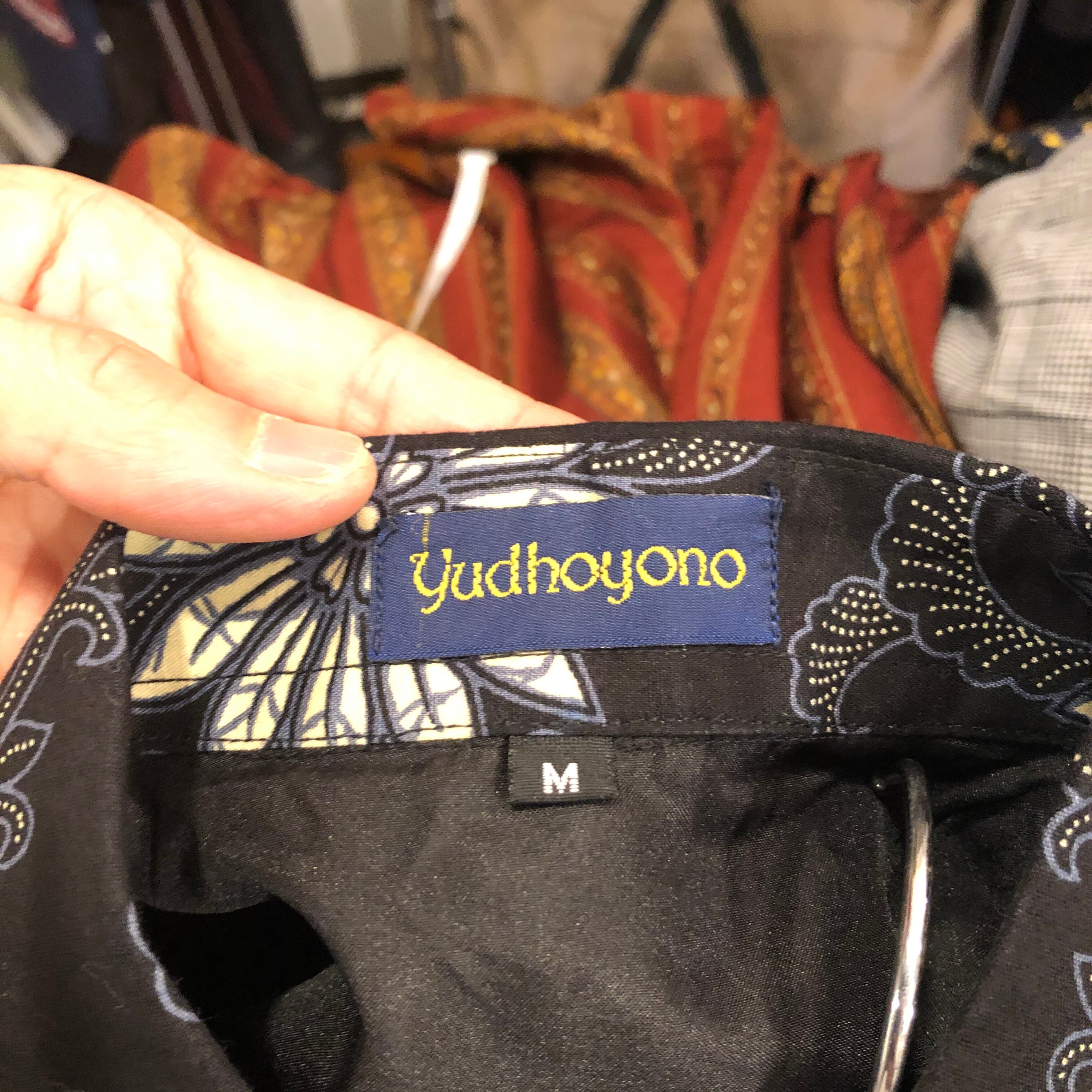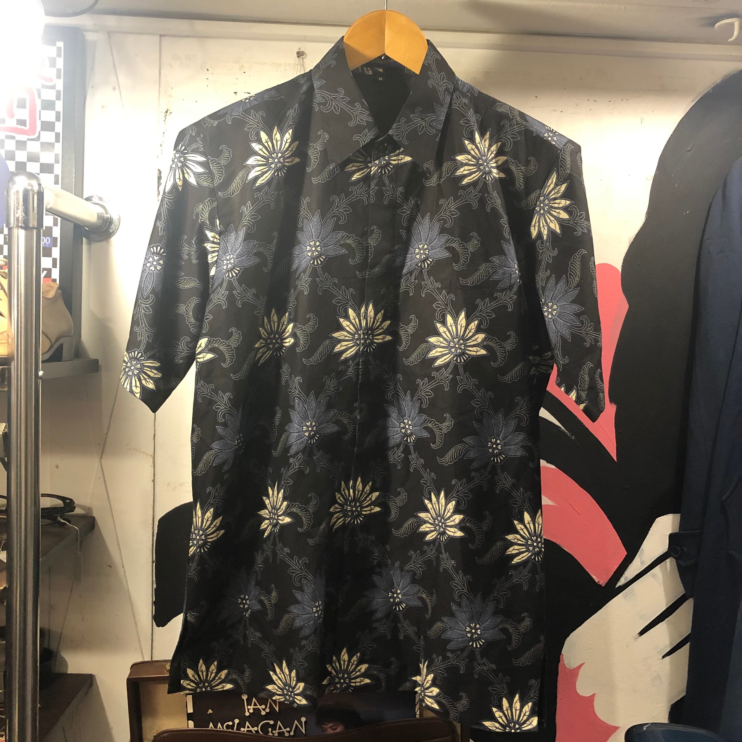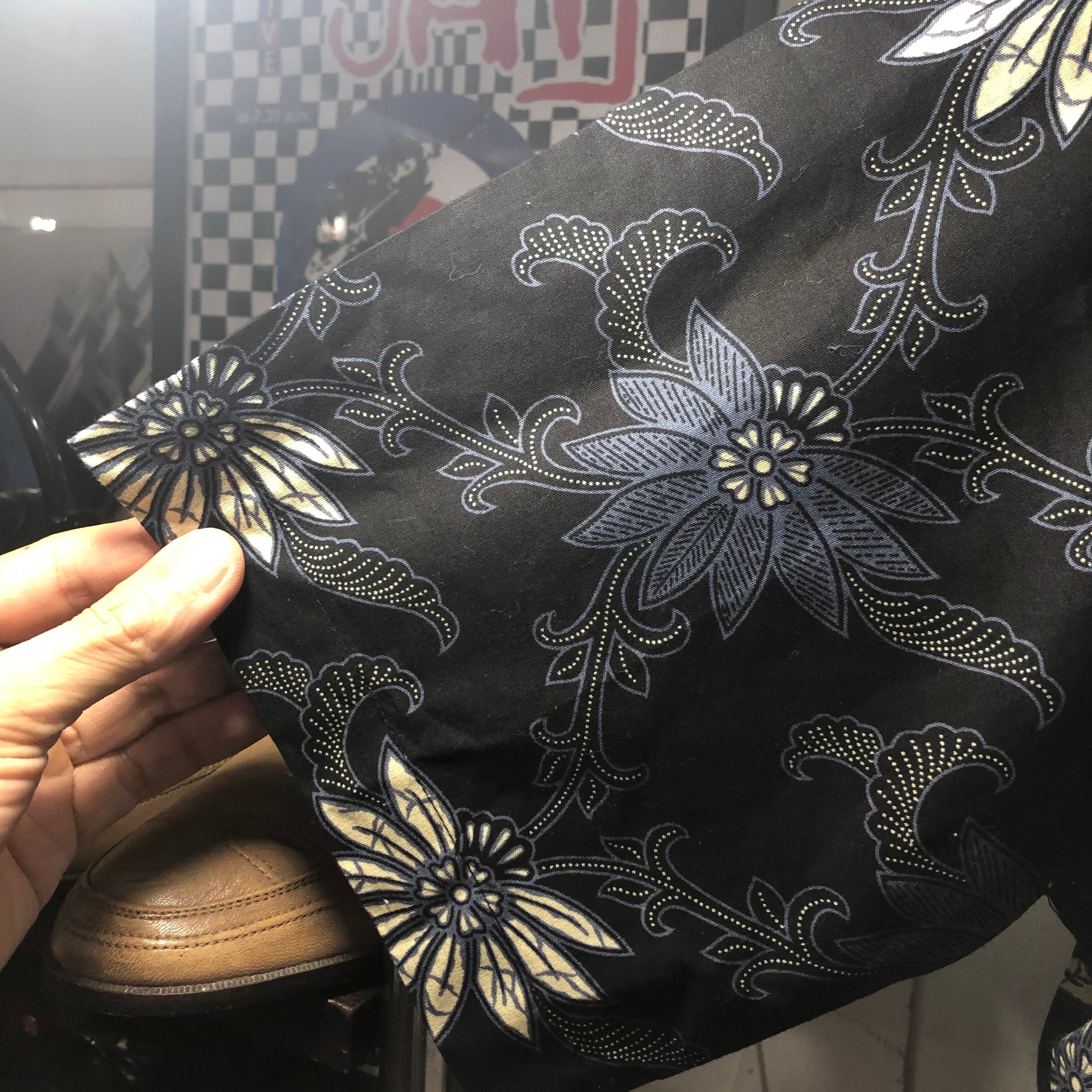 ボディーは、黒で白い花や紫っぽい花がバティック特有のクッキリとした迫力のある絵柄でプリントされています。