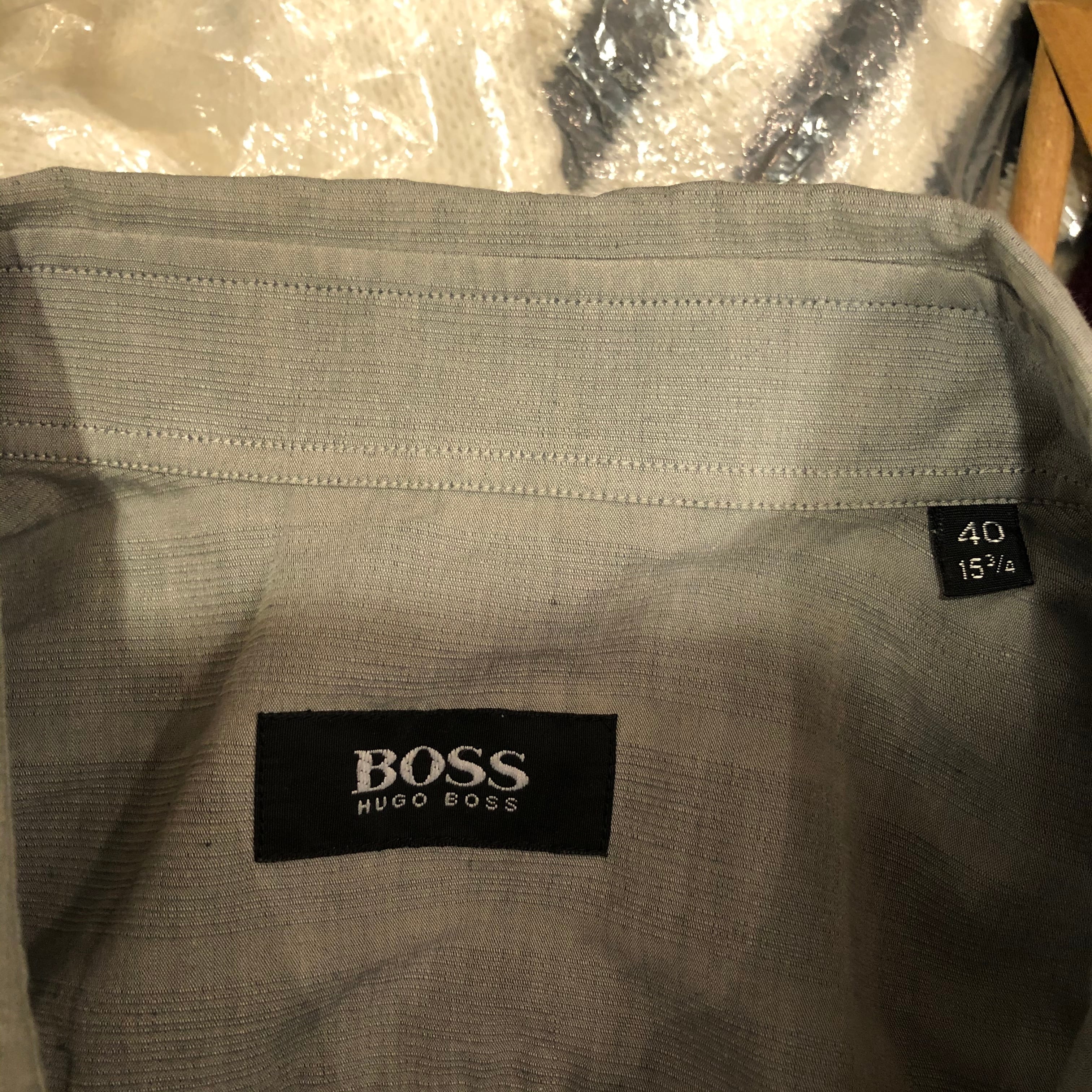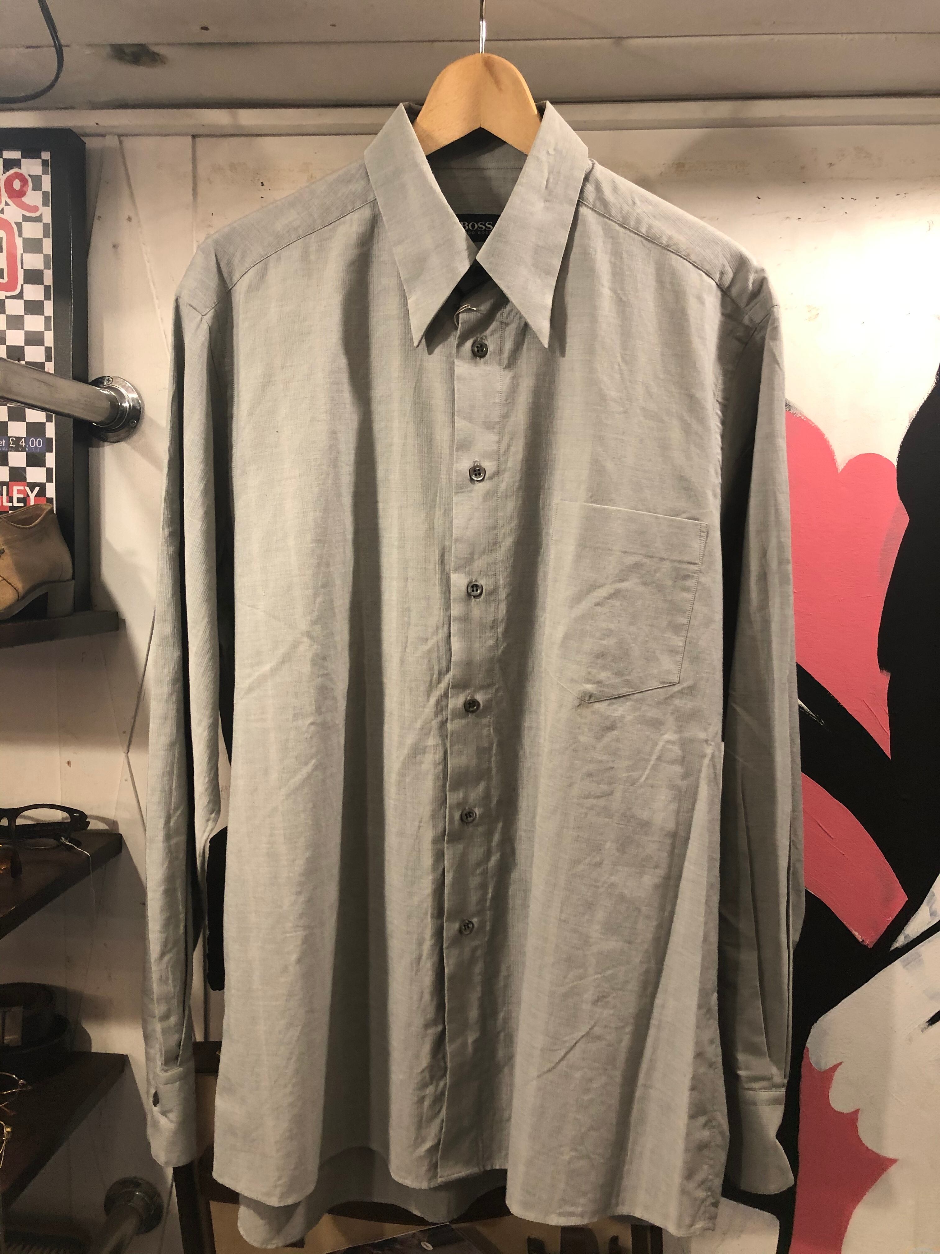 Hugo Boss バリモアカラーシャツ。通常より襟先が長い襟をバリモアカラーと呼びます。ハリウッド俳優のジョンバリモアが着用していた事に由来します。