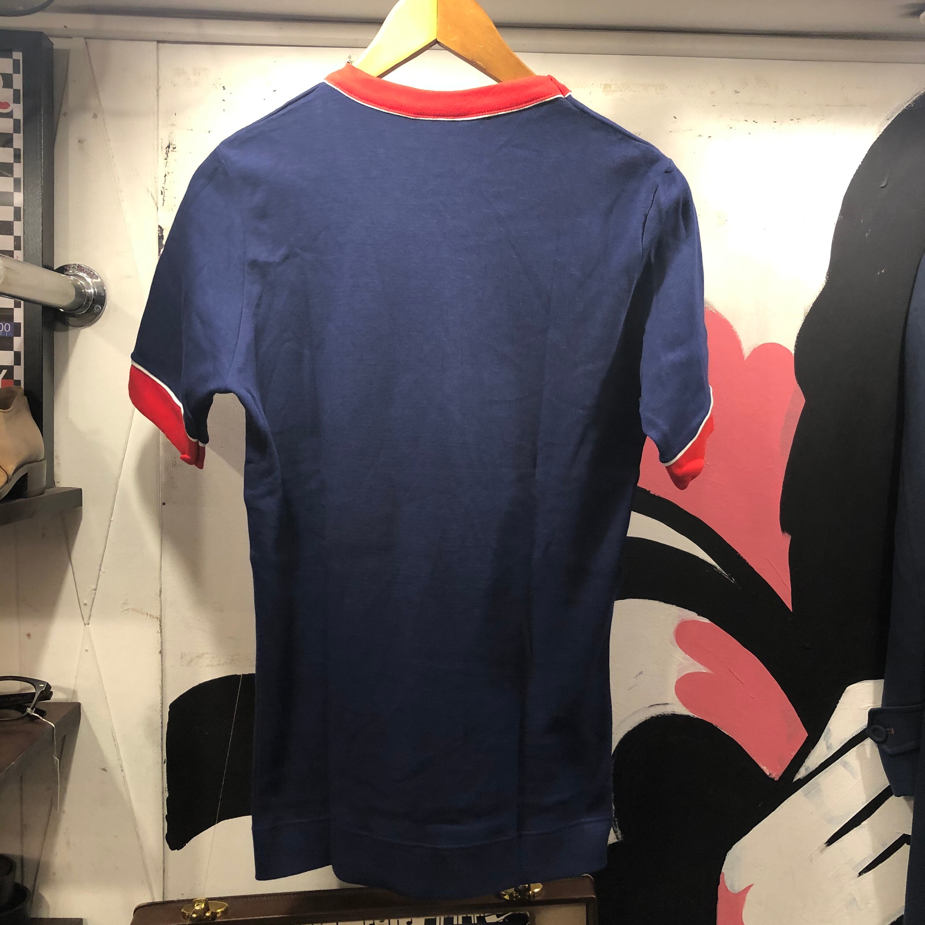 非常に伸縮性のあるコットン100%で、タイトフィット感のある70年代ヨーロッパ特有の特徴を備えたヴィンテージ Tシャツ。