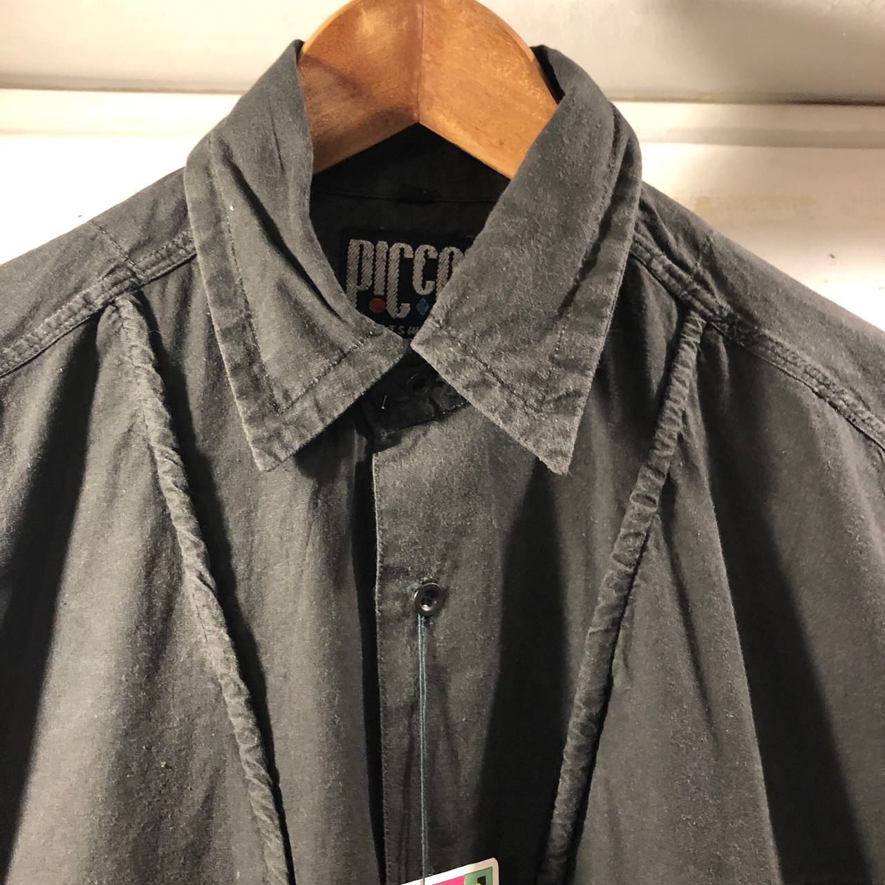 ボタンはメタルボタン仕様で、両肩からポケットにかけて、切り返しのようなデザインになっている。