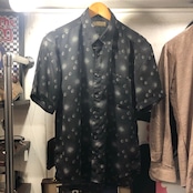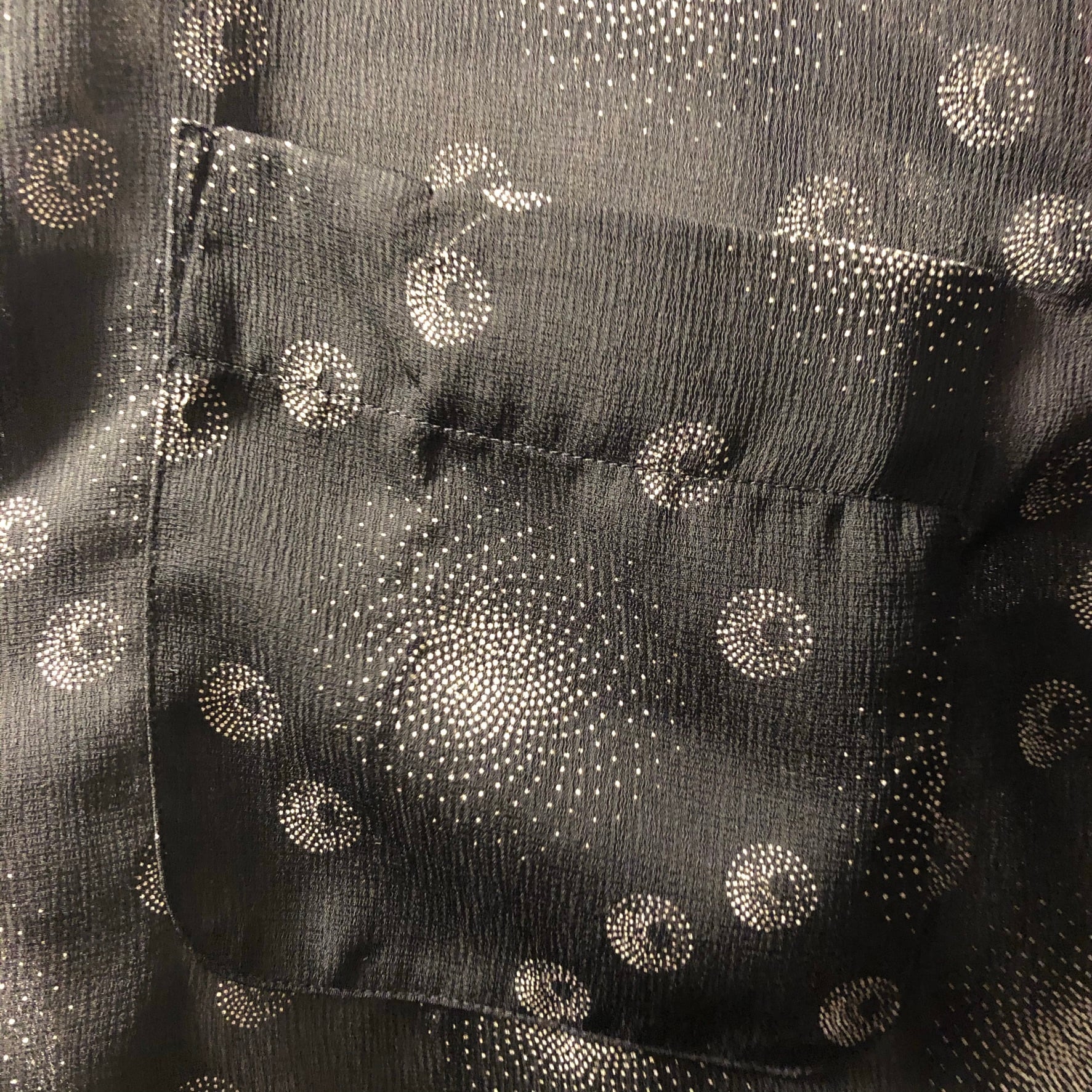 ちりめん加工の透け感のある生地。黒ベースに、白の点描によって作られた模様が独特の雰囲気を醸し出してます。