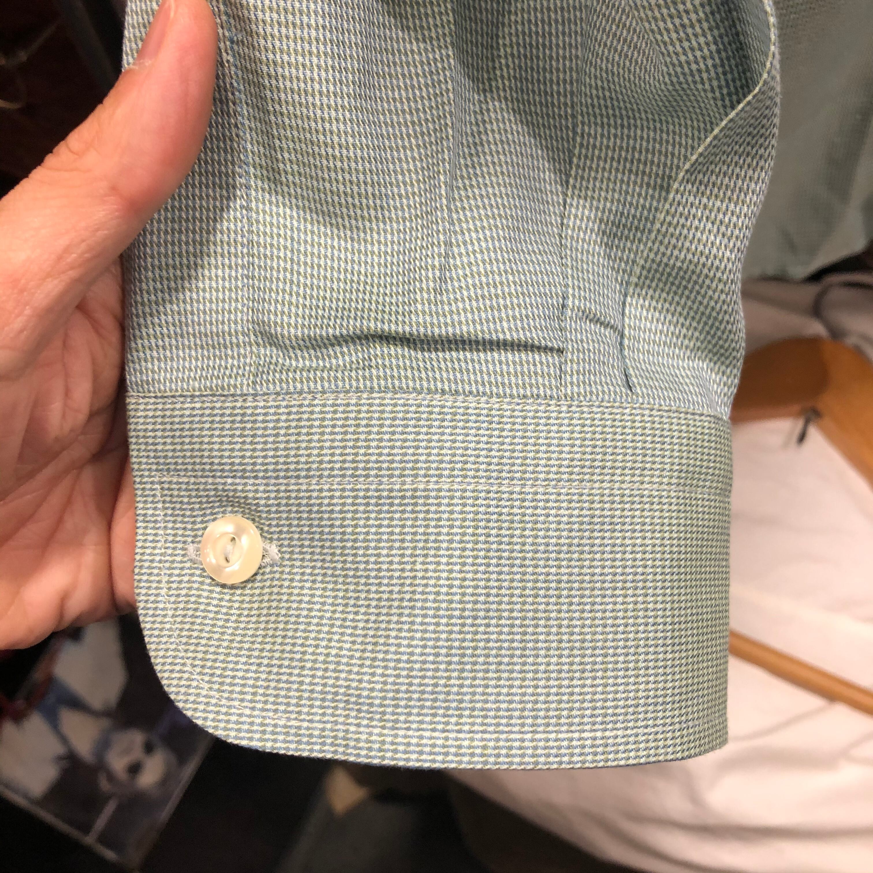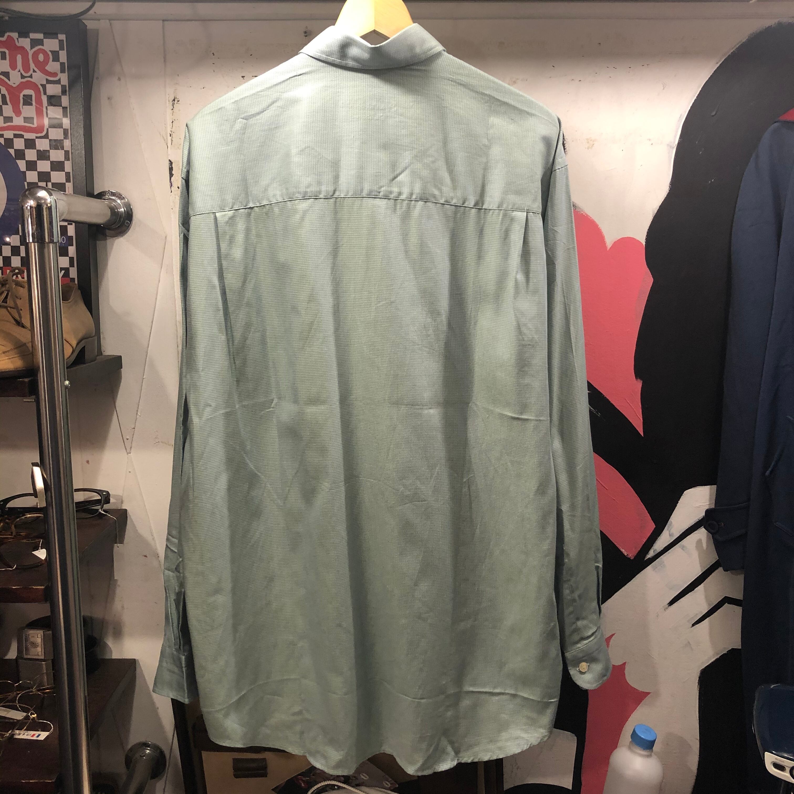 グリーン×水色×白の爽やかな色合いのシャツ。