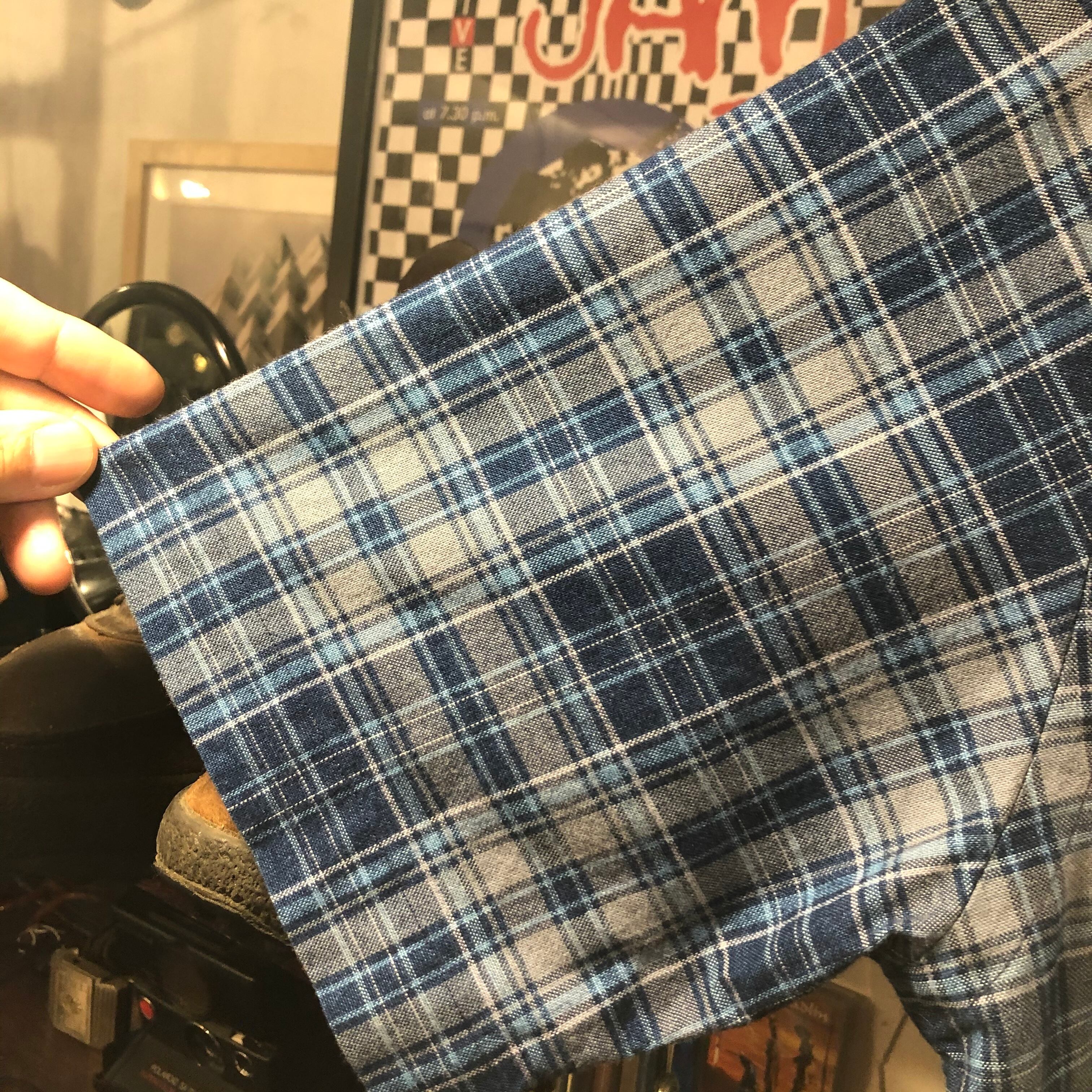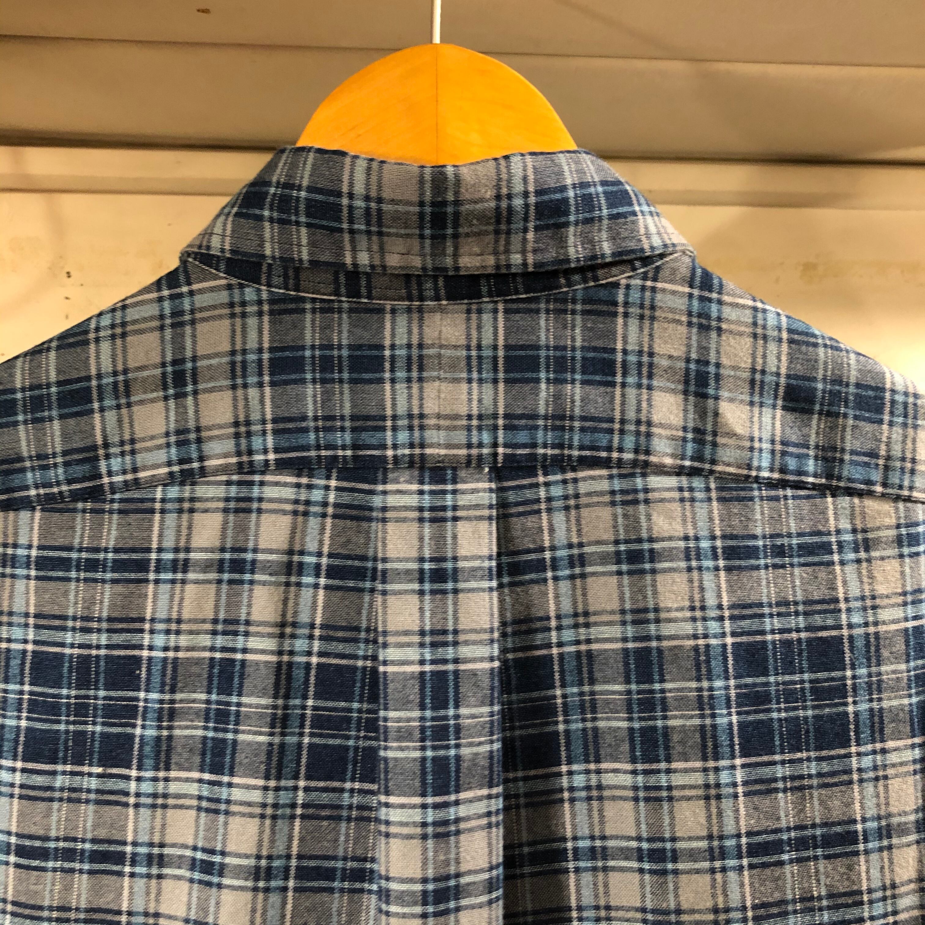 紺×水色×グレーの大判チェック柄のボタンダウン