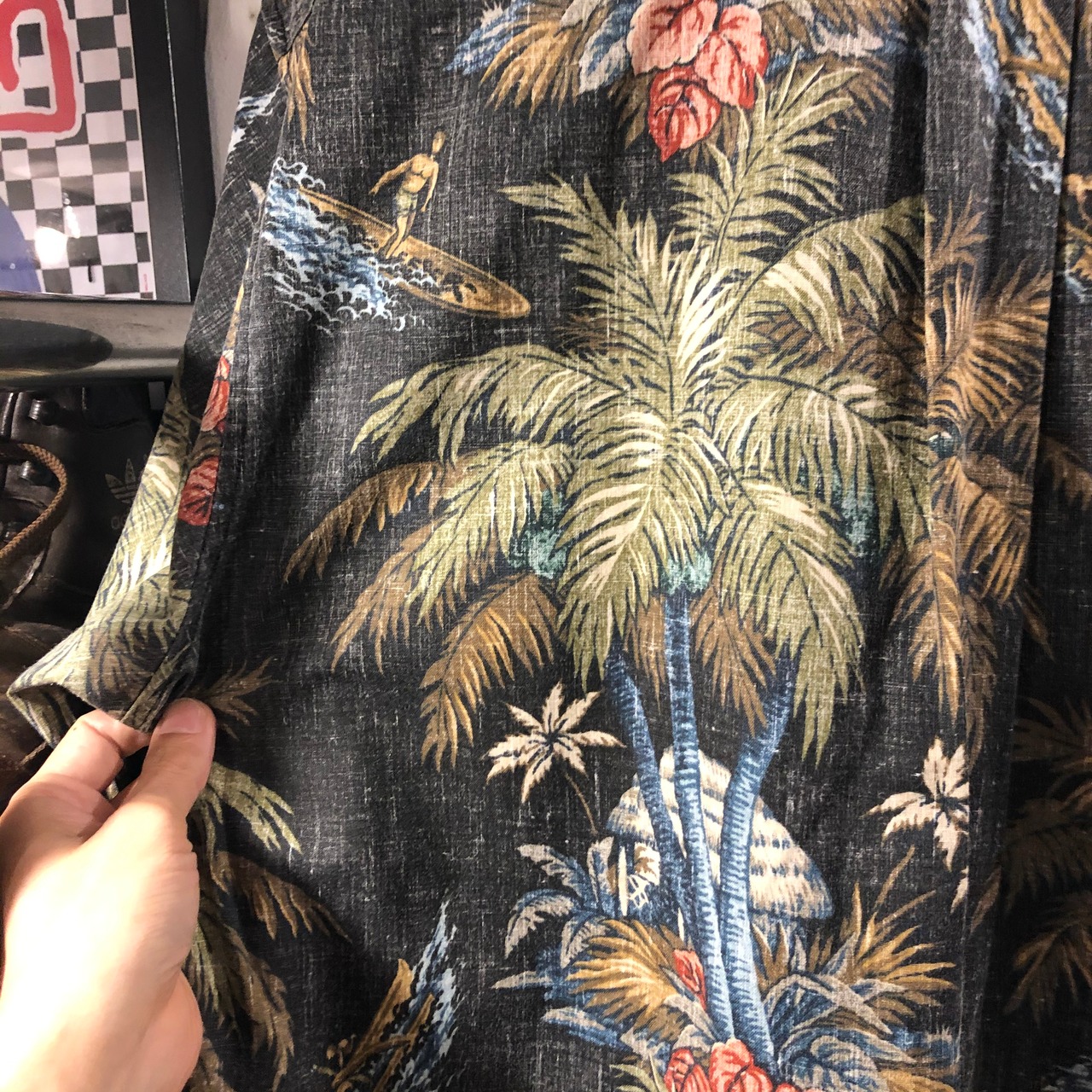 裏地をあえて表地に使って、掠れた風合いを前面に見せることによって、アロハシャツの派手なデザインを抑える効果を見出したスプーナークロス。