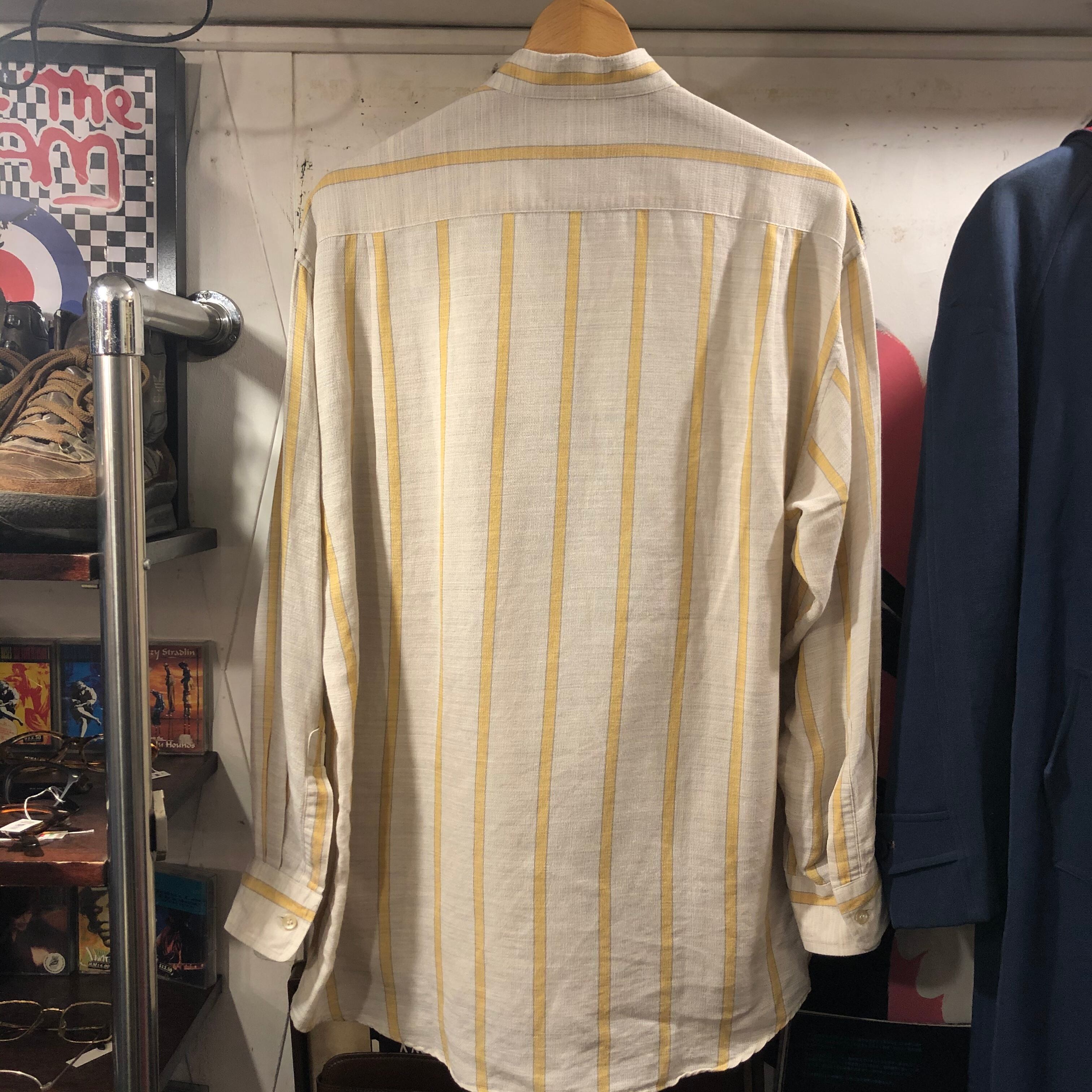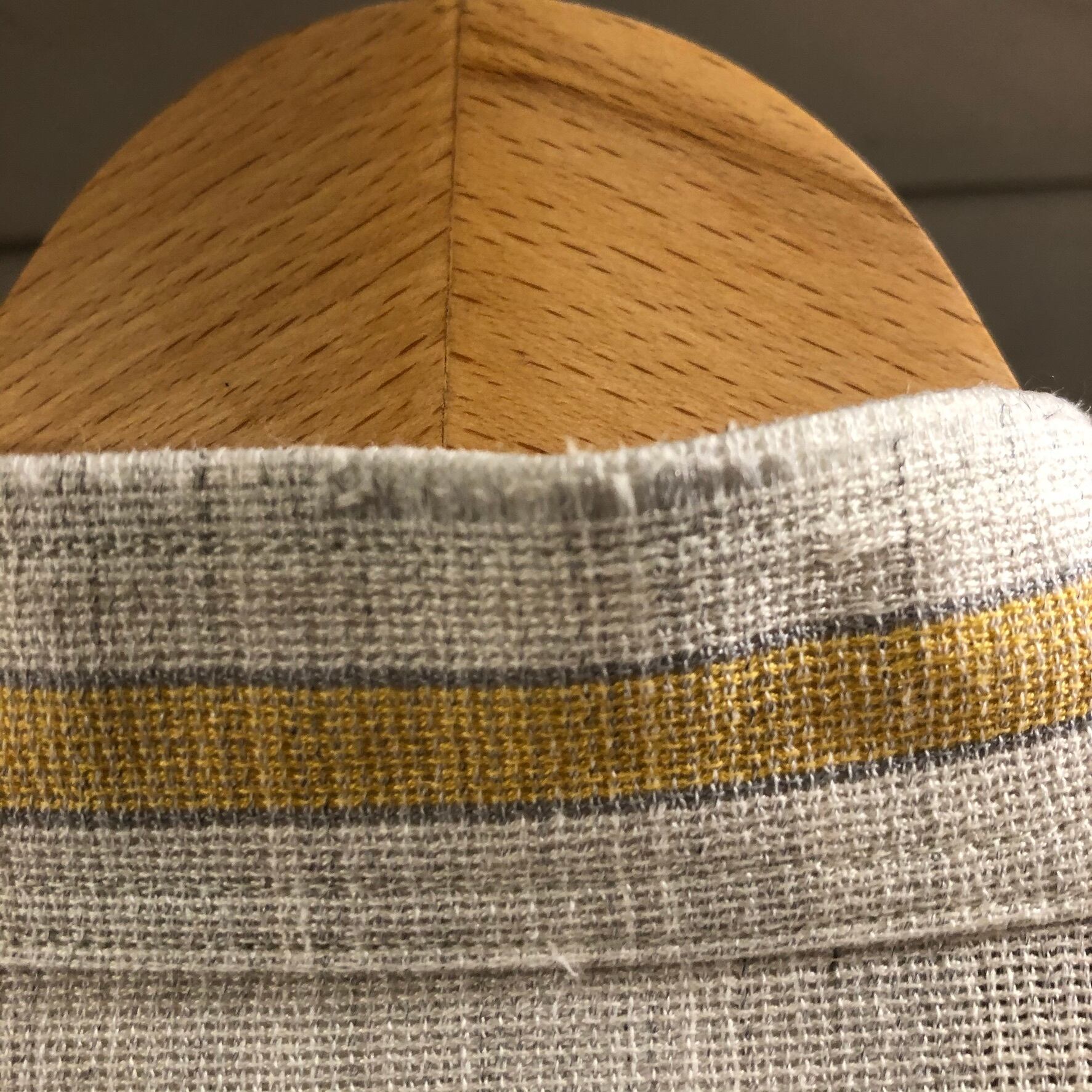 落ち着いた色味の黄色のストライプが、涼しげで、非常にお洒落な雰囲気。首の後ろ部分の生地が少し摩耗してすり減っている。画像を見て、ご確認の上ご検討下さい。