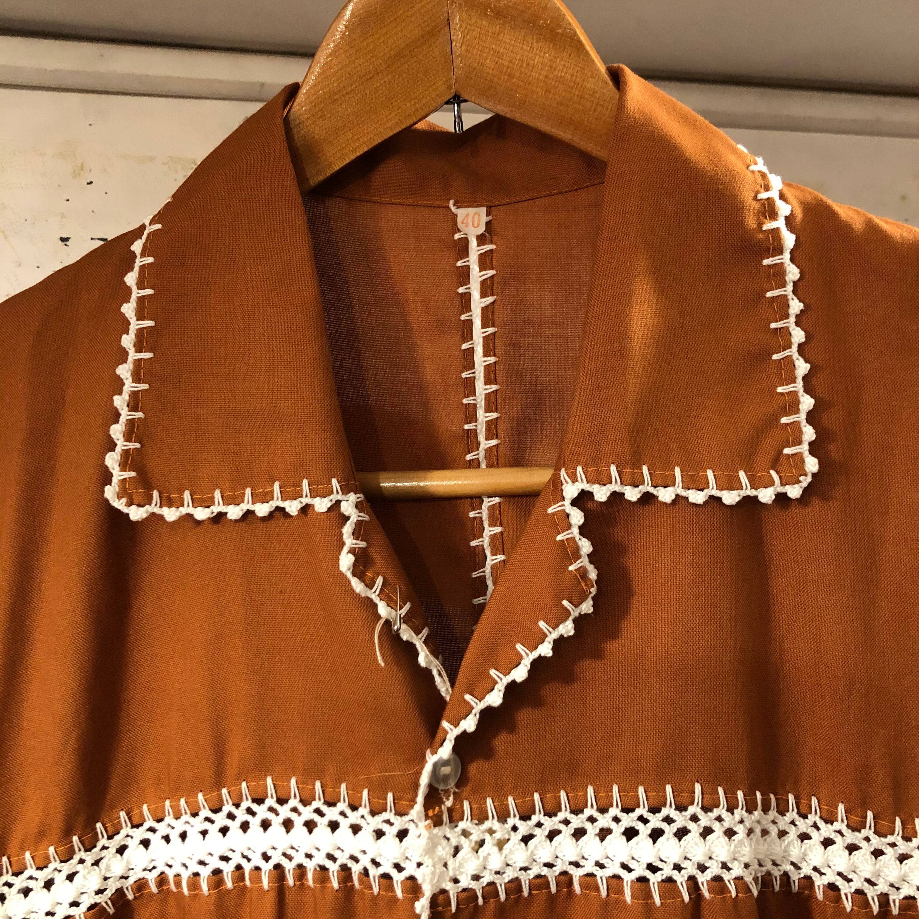 ヴィンテージ レース編み開襟シャツ