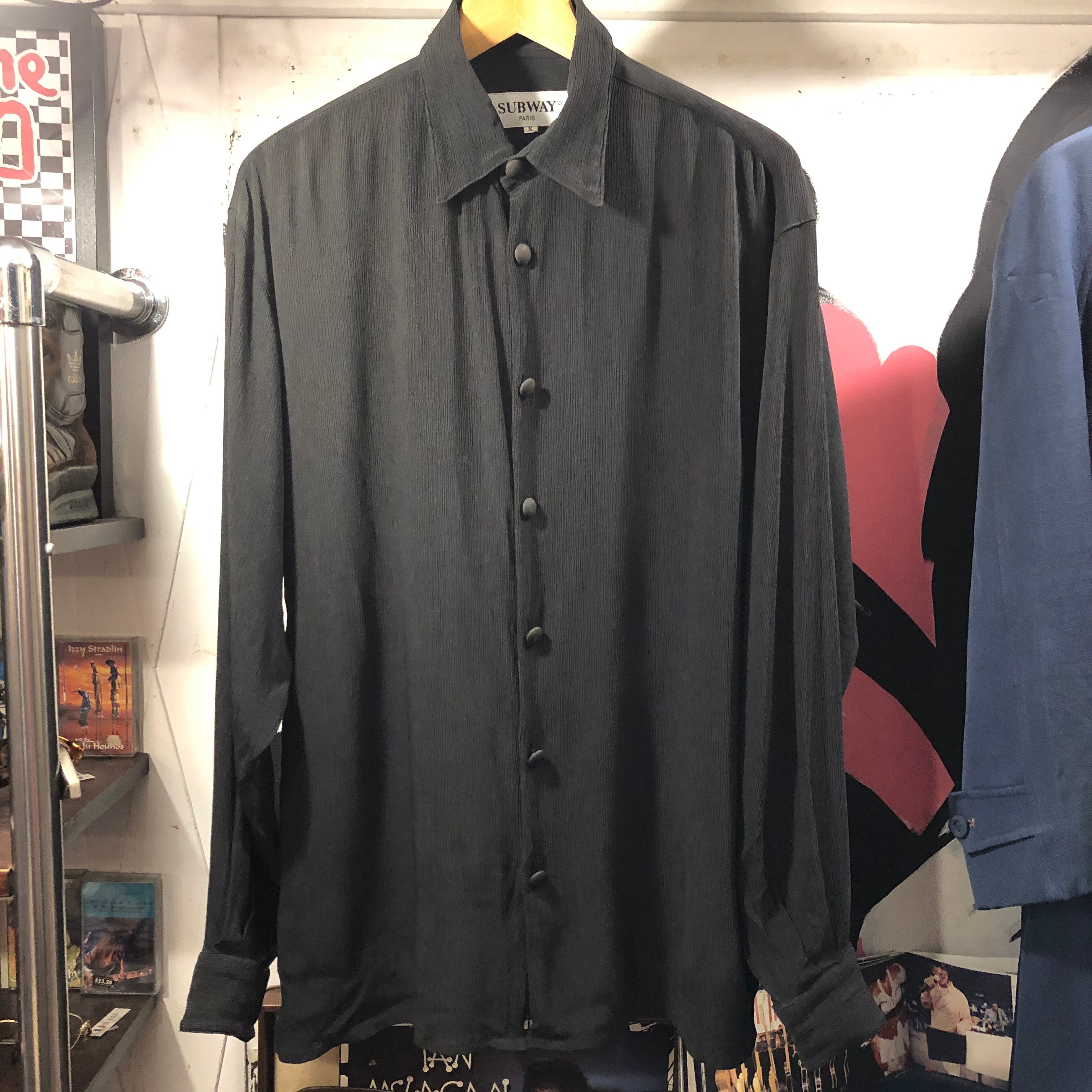 墨黒の細い畝状のシルクレーヨンシャツ。畝状になっているので、横に伸縮性があります。