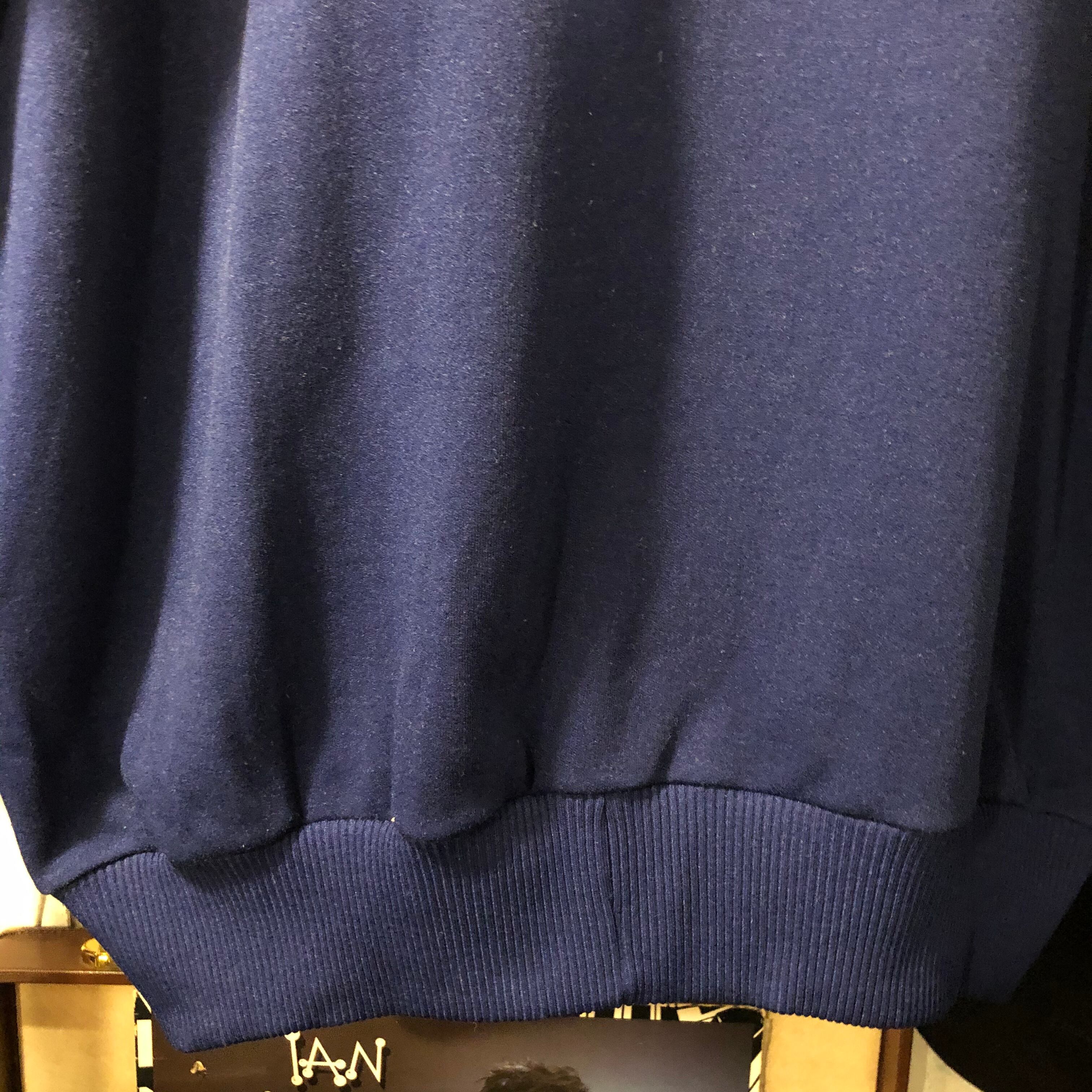 ネイビーに白の二本線の極めてシンプルなデザインのジャージ。ジップは、Optiジップで、首まで隠れるロングリブ仕様です。