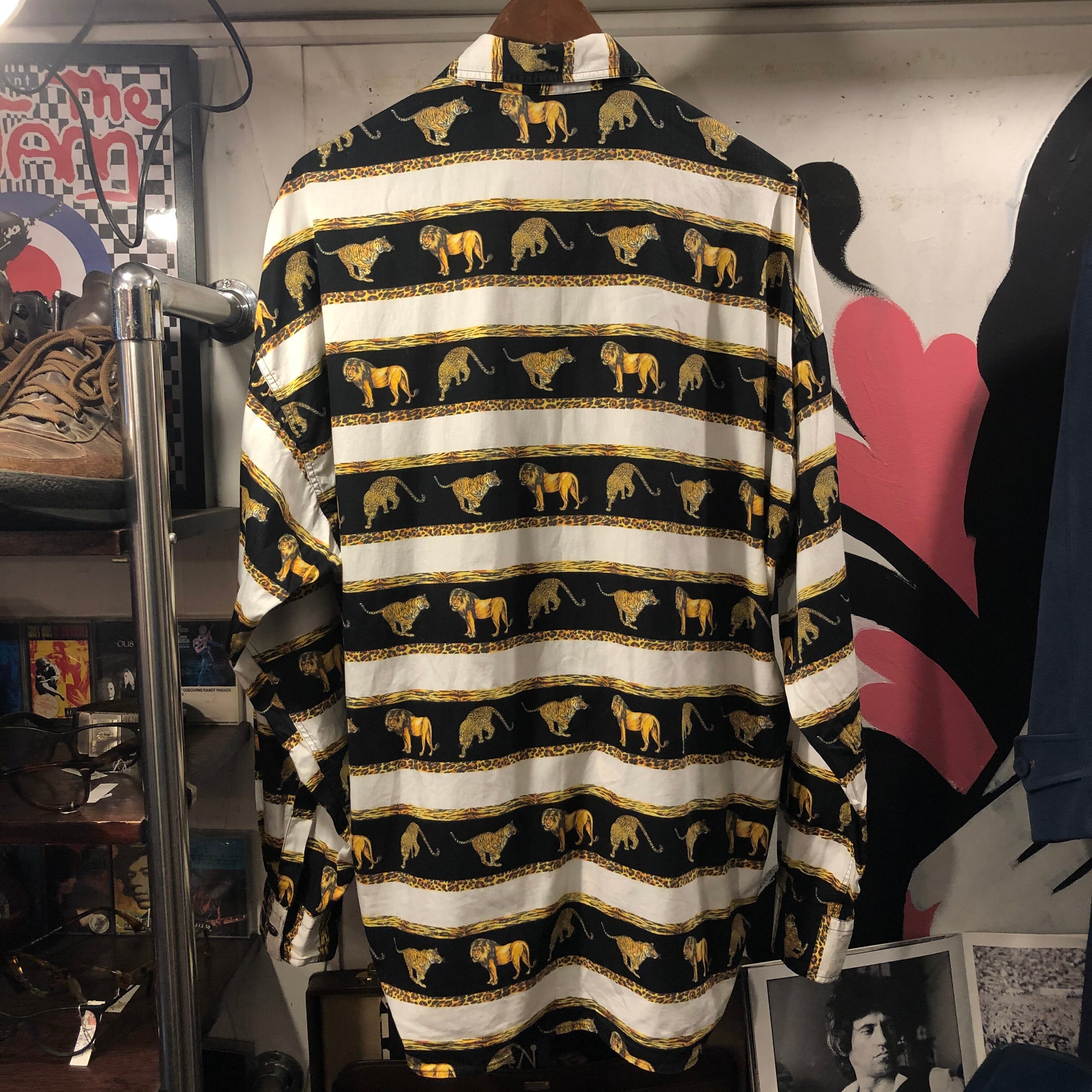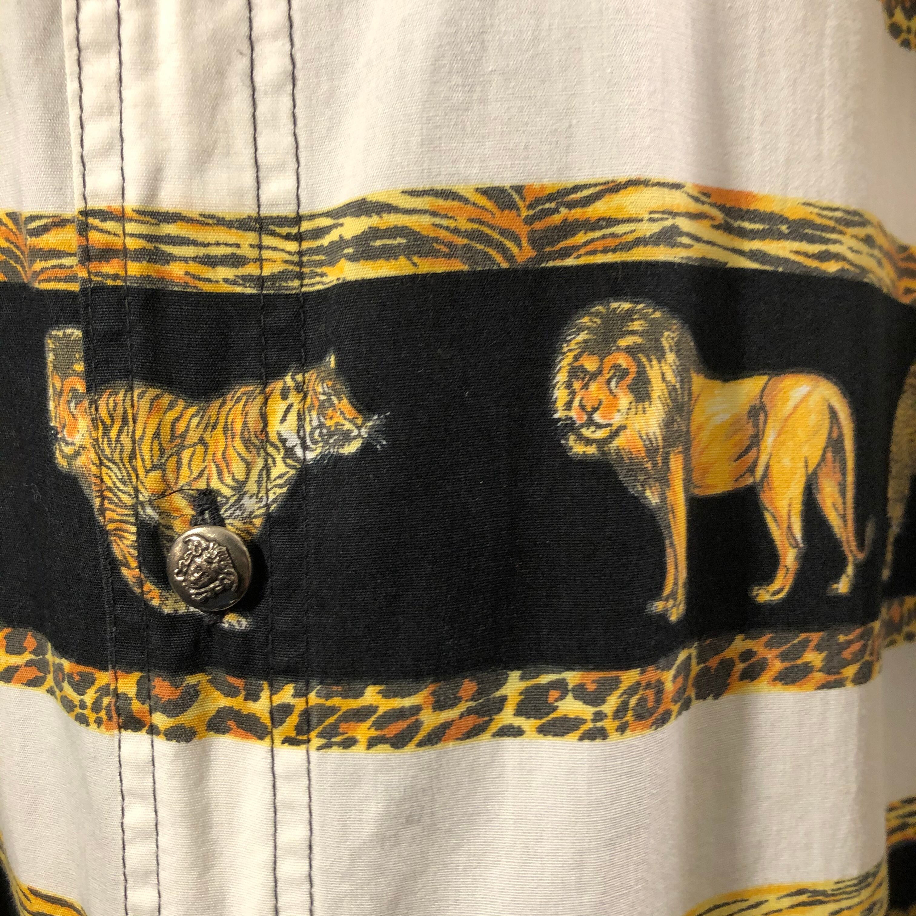 ライオン、虎、チーターの超肉食動物をモチーフにしたヴェルサーチらしいインパクト抜群のシャツ。