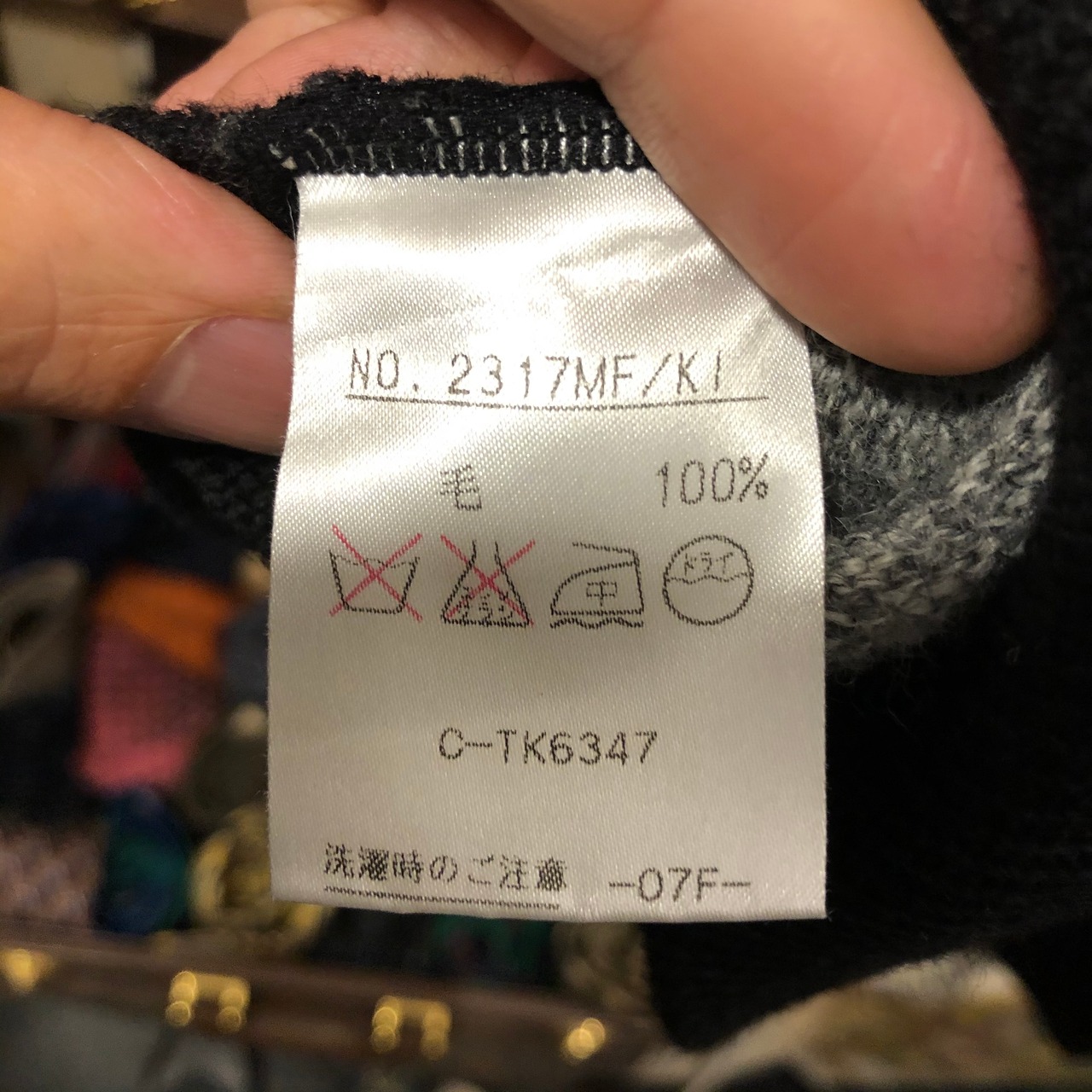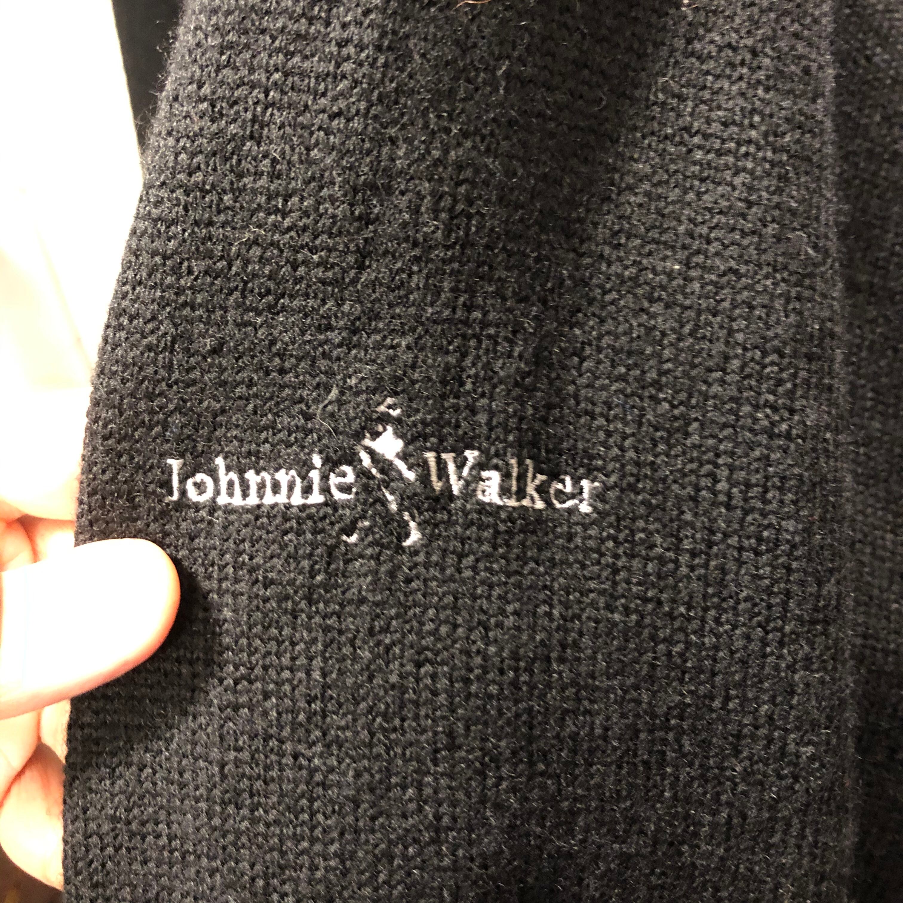 どのような経緯でこのニットが生産されたのかはわかりませんが、ジョニーウォーカーの黒ラベルのデザインとスコットランドでなじみの深いアーガイル柄を融合させたかっこいいデザインだと思います。