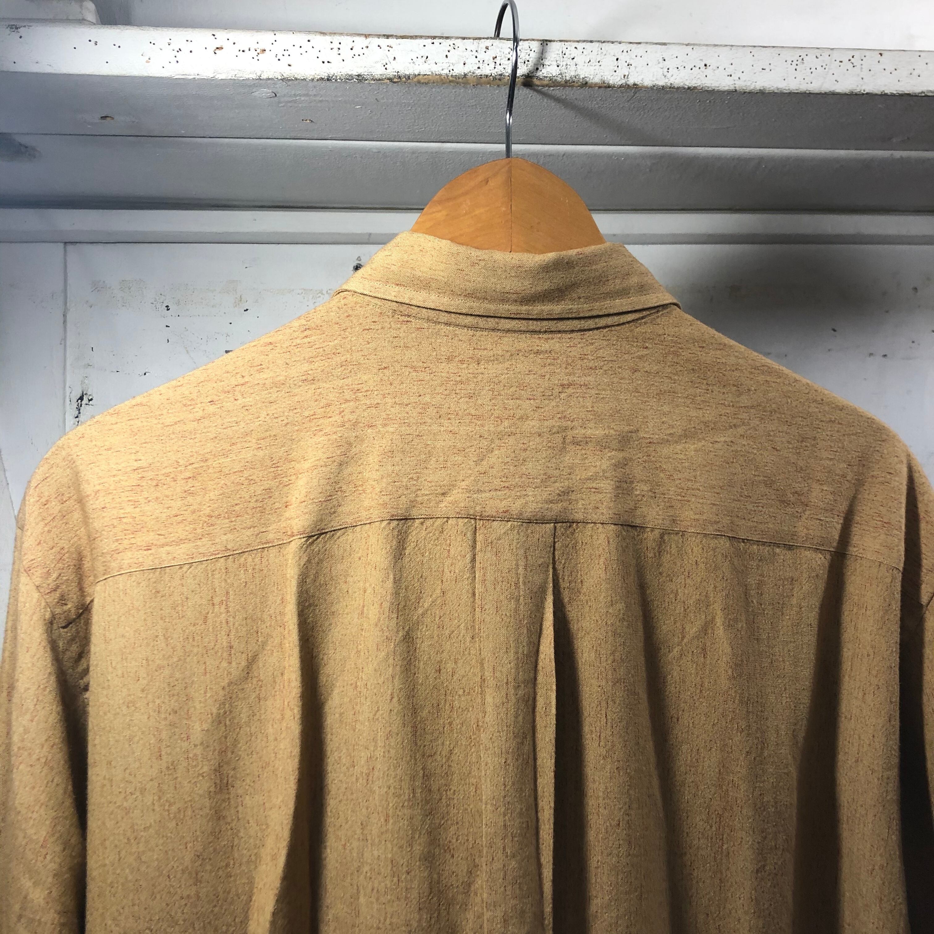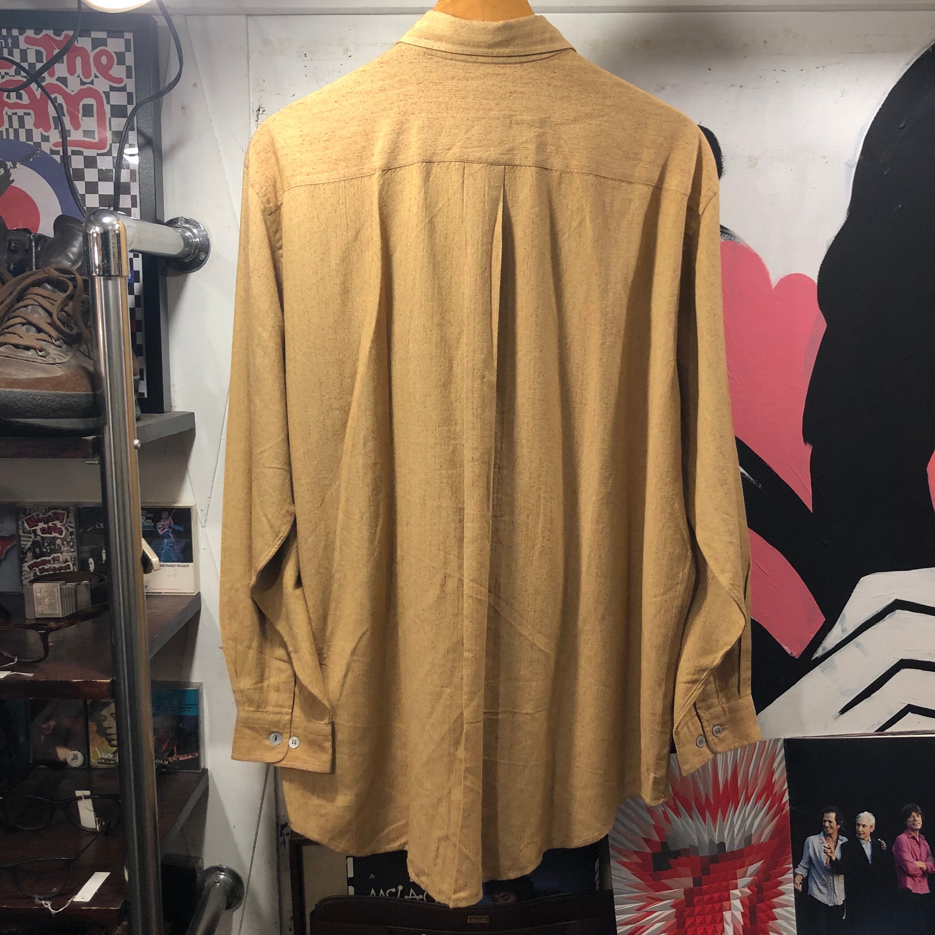 シャツの色は、山吹色に掠れた感じの赤茶が混ざった秋の雰囲気満載です。