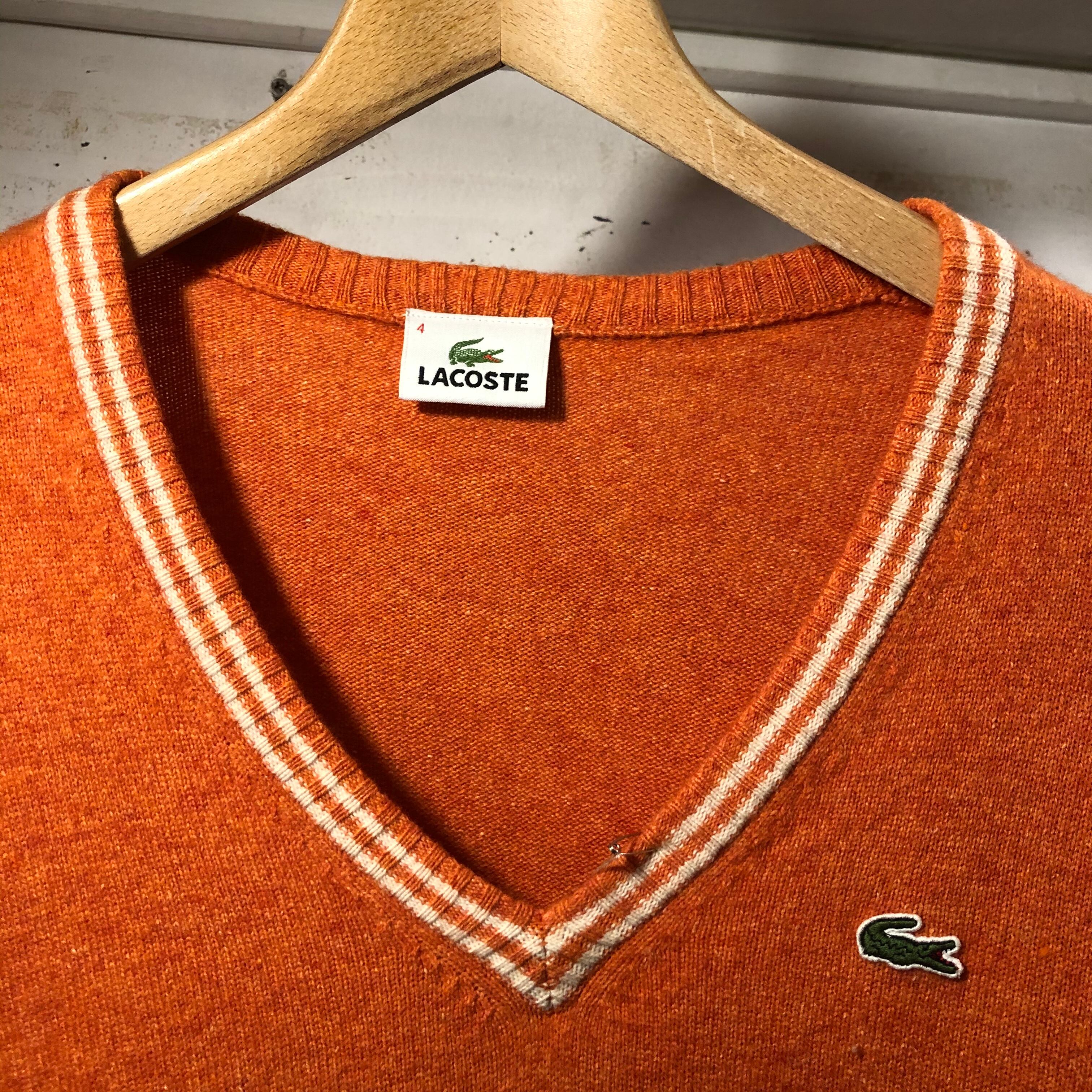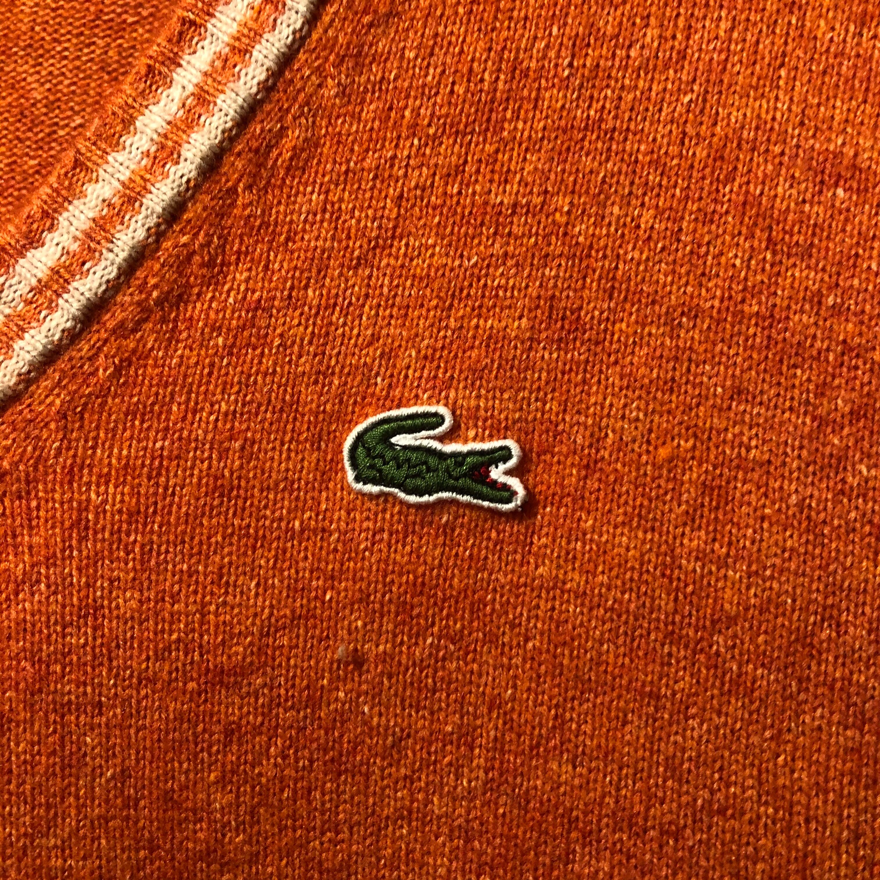 明るいオレンジ色のポップな雰囲気のVネックです。ファブリカは、ラコステのライセンスを所有している日本の企業です。