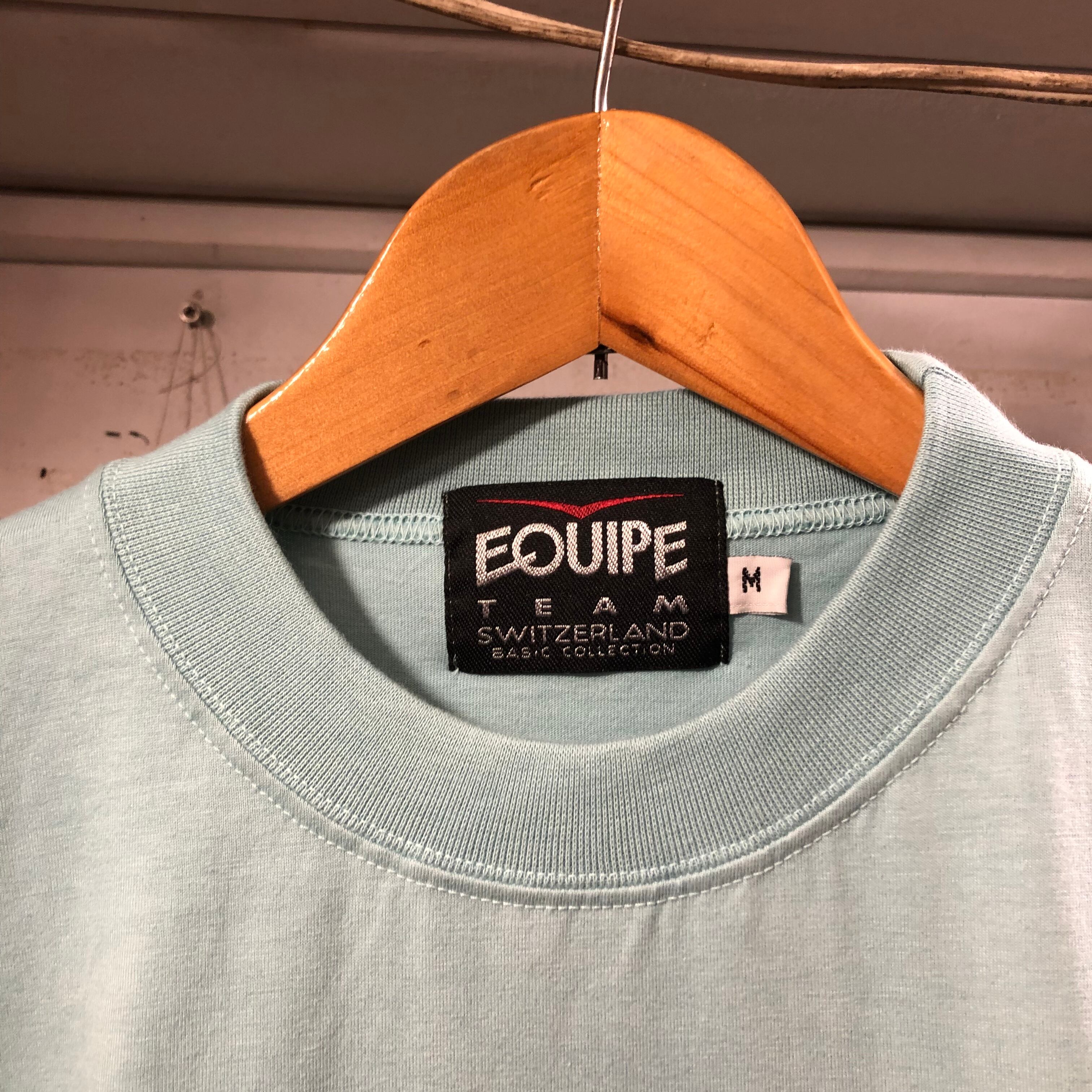 アイスブルーの涼しげな色味のスイス製のTシャツです。