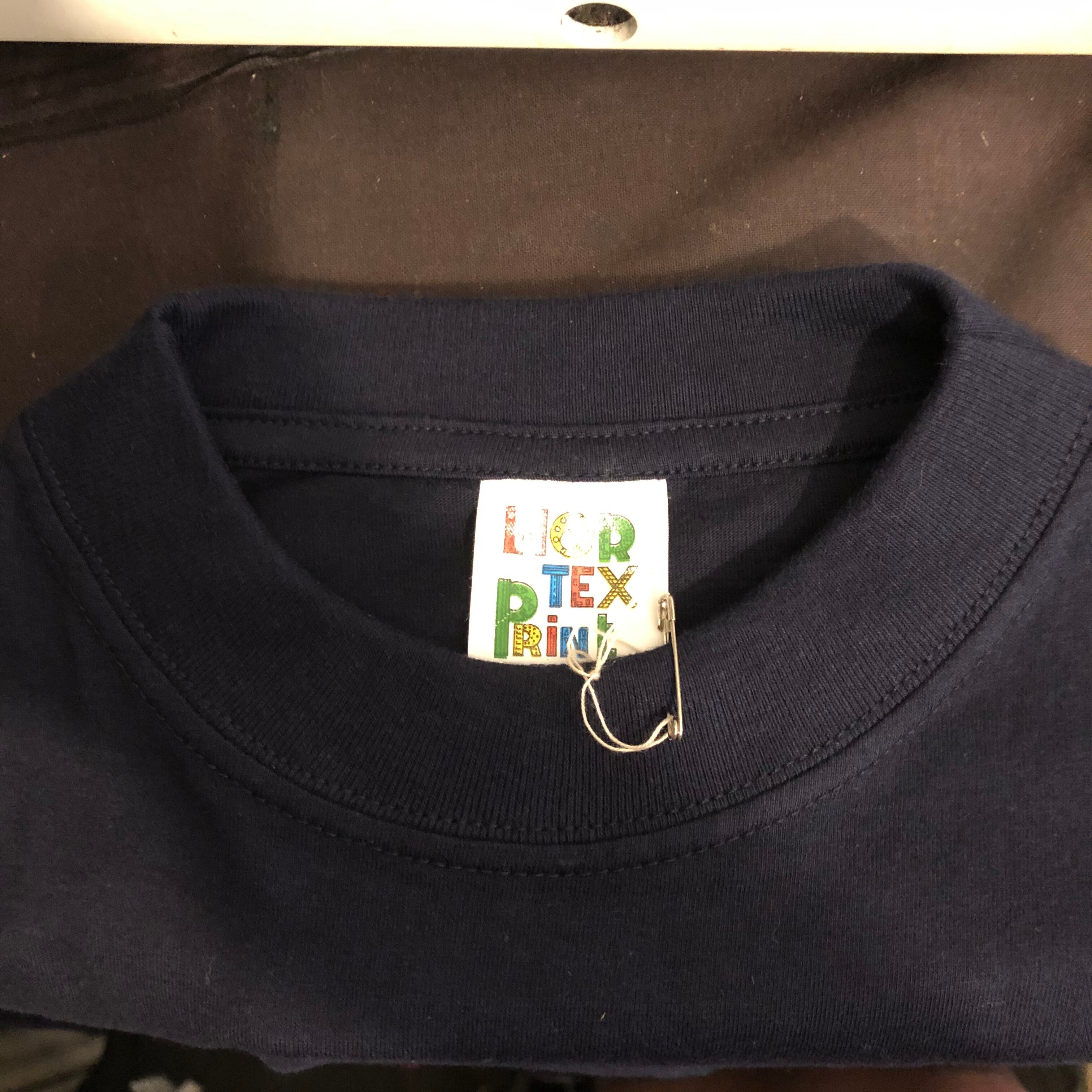 ボディーのダークネイビーに、カラフルな刺繍が映えます。ネックのリブは、厚みがあり、しっかりとした造りです。