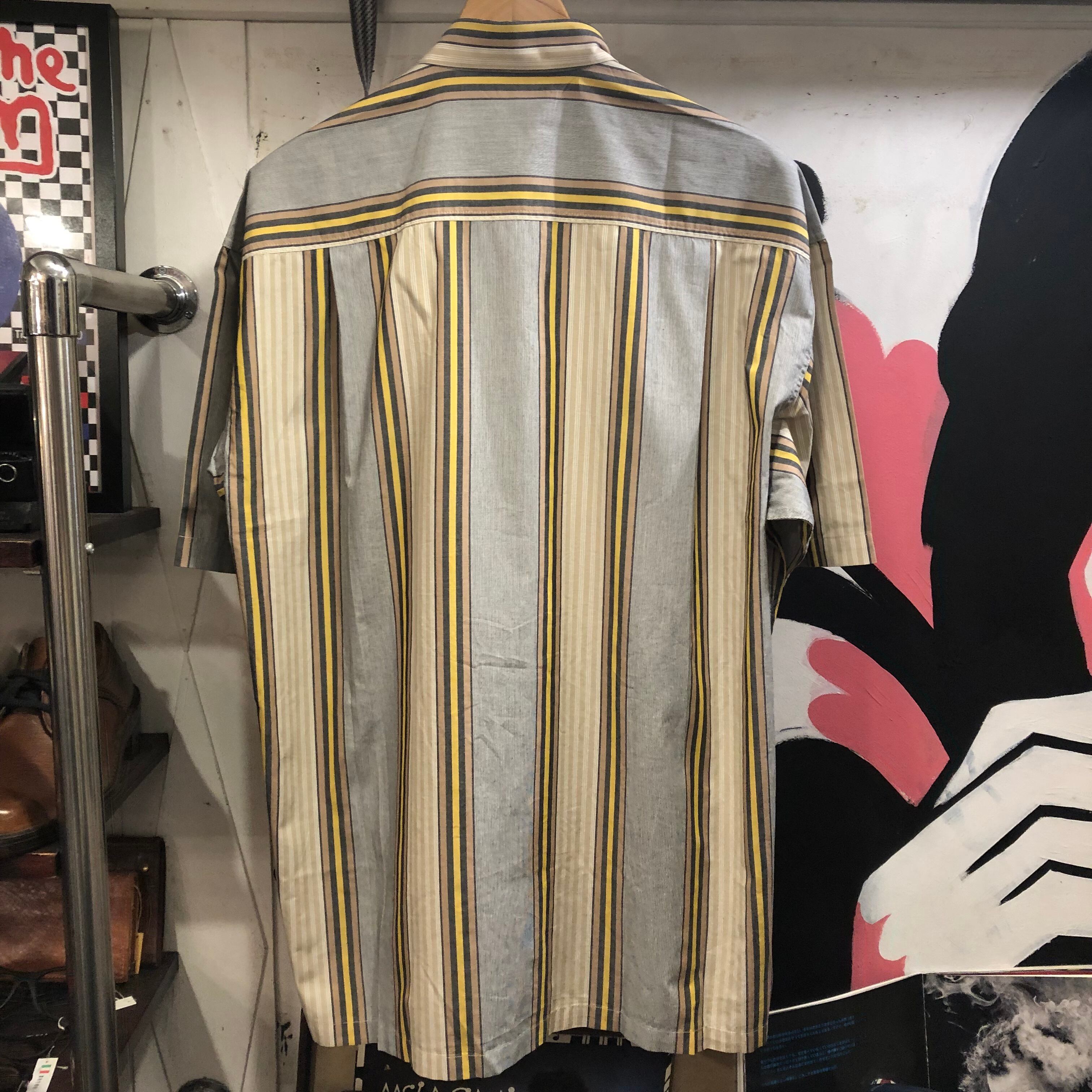 シックな色合いの、ストライプ柄の半袖シャツです。