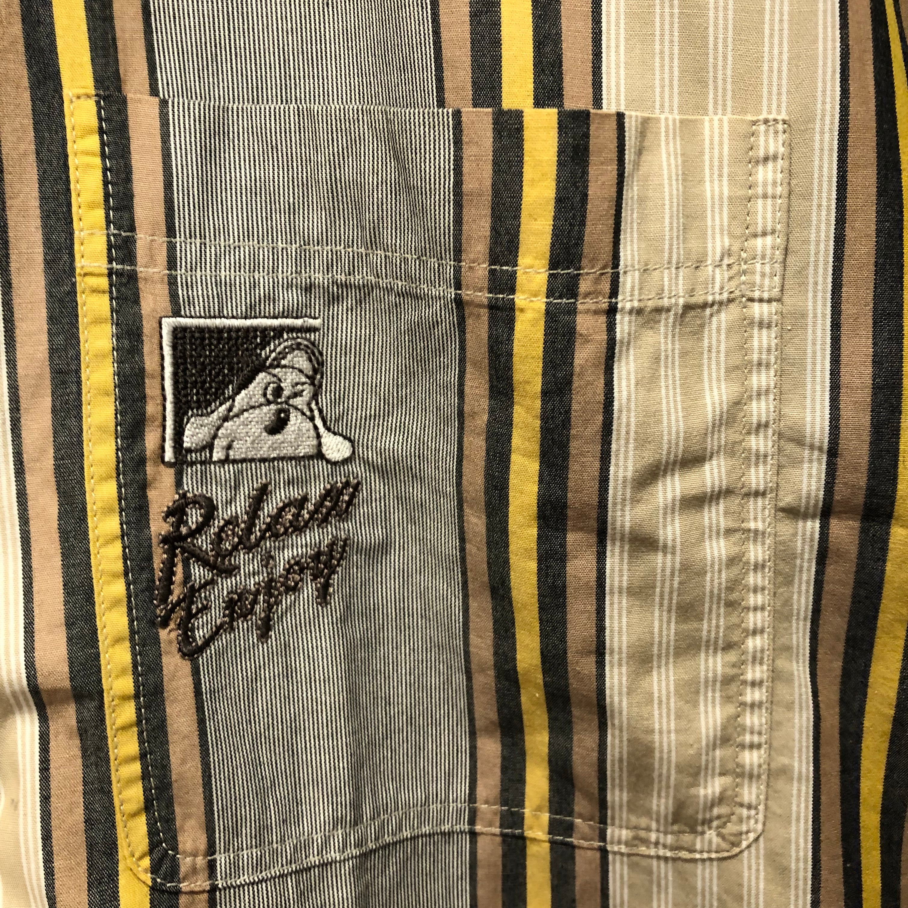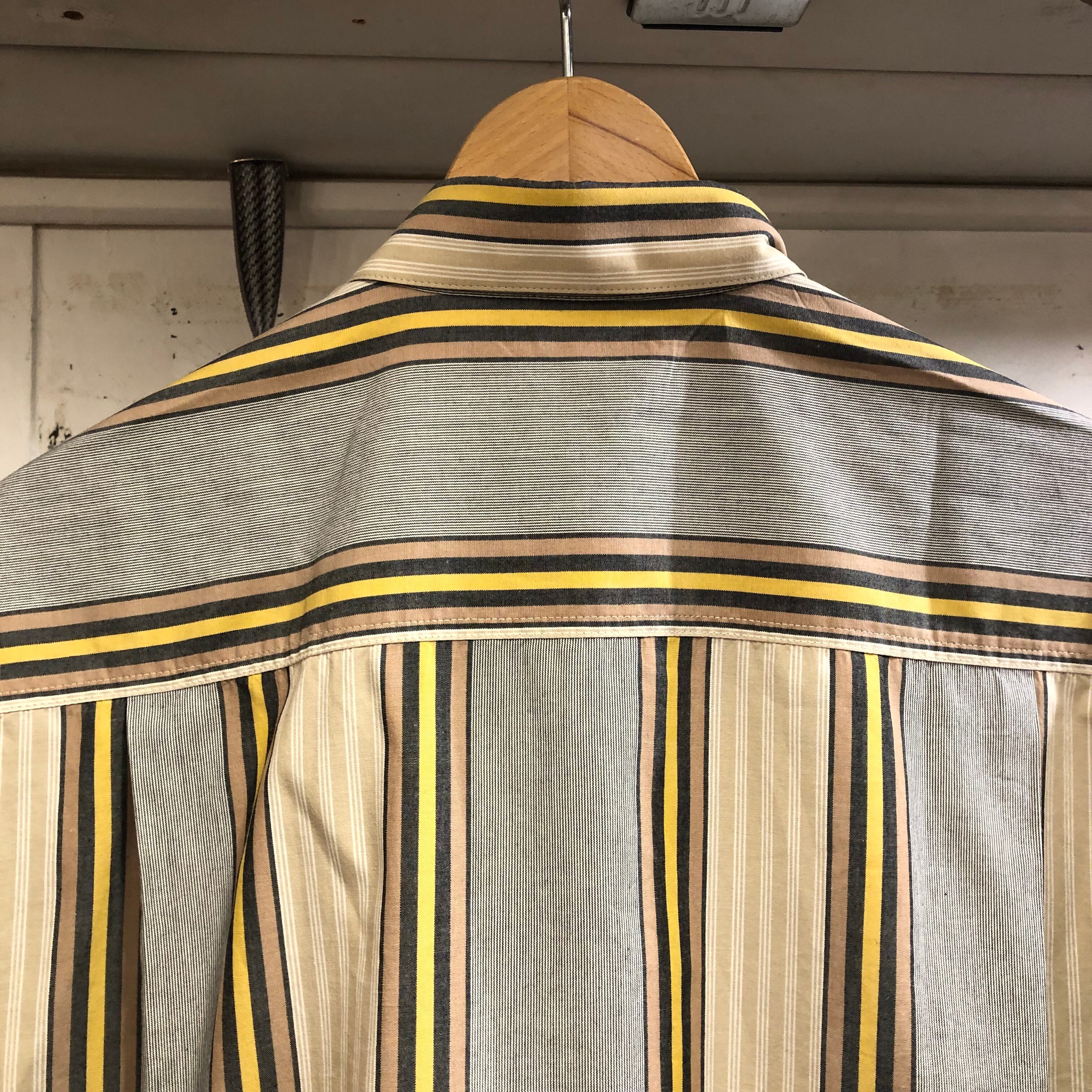 ストライプの柄は、太い幅と細い幅を交互に使っていて、ボタンの部分は、ボーダー柄になっていたり、ユニークなデザインです。