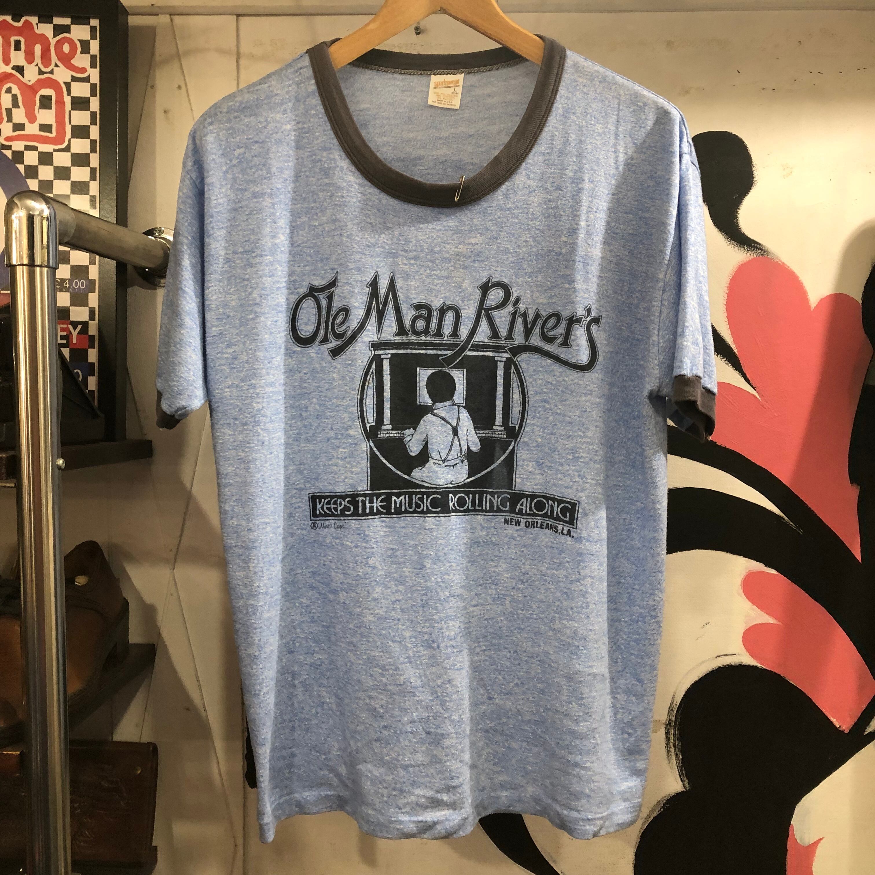 甘くなり過ぎない、ちょうど良い色味が魅力のOle Man River's 霜降り水色リンガーTシャツ。