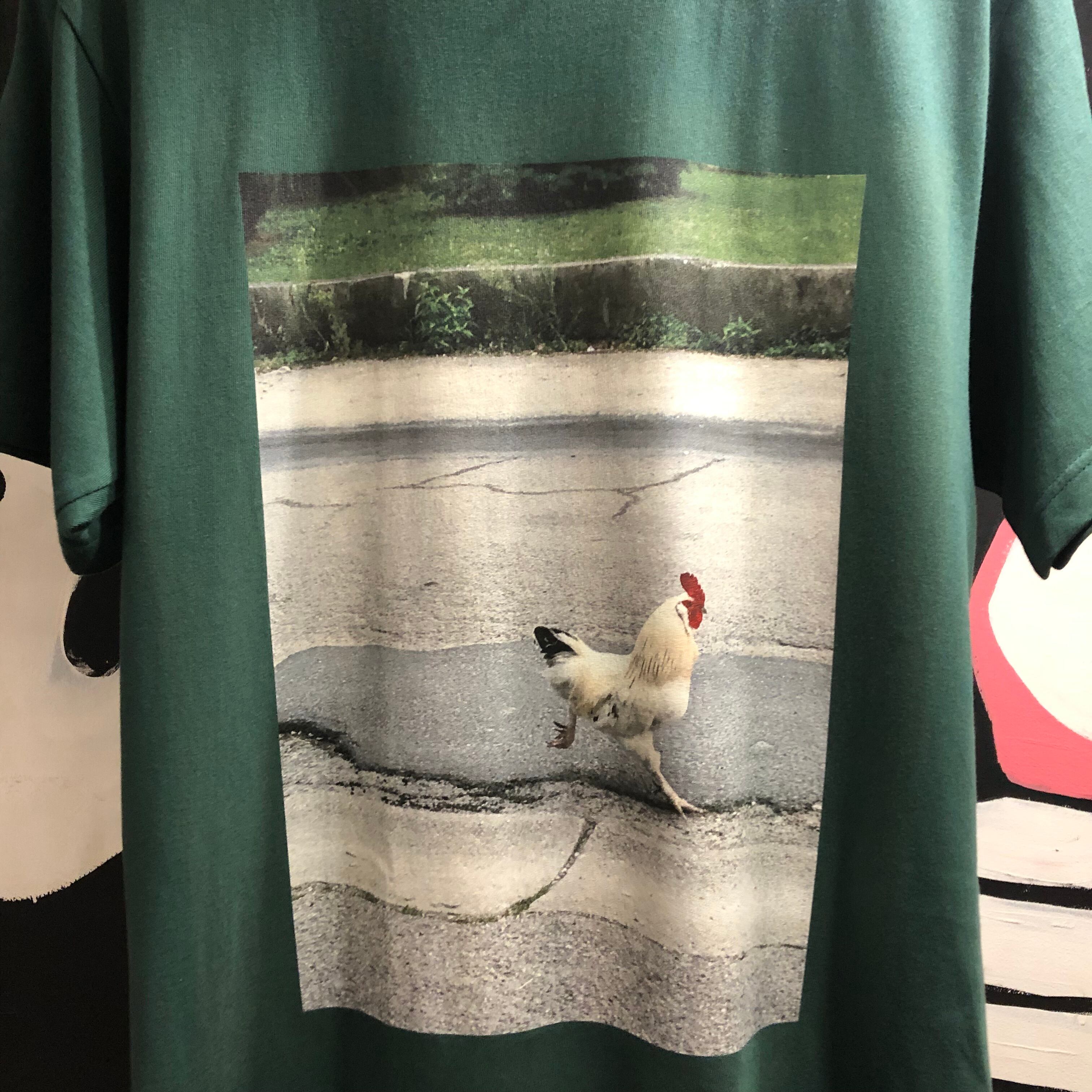 構図も良く、トサカの赤がアクセントになっていて、何気にお洒落で鶏がTシャツになってることは、あまりないので面白いと思います。